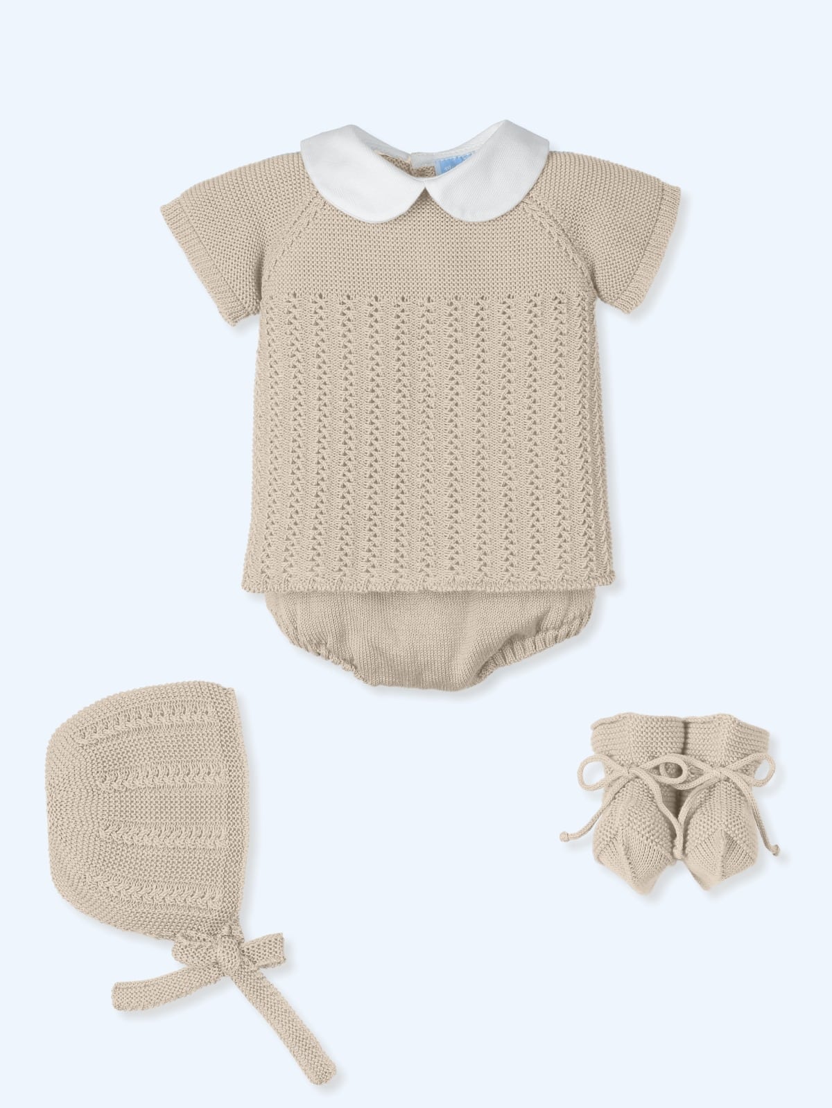 Detalle calados y cuello bebé en blanco. Camiseta con apertura en la parte trasera completa.