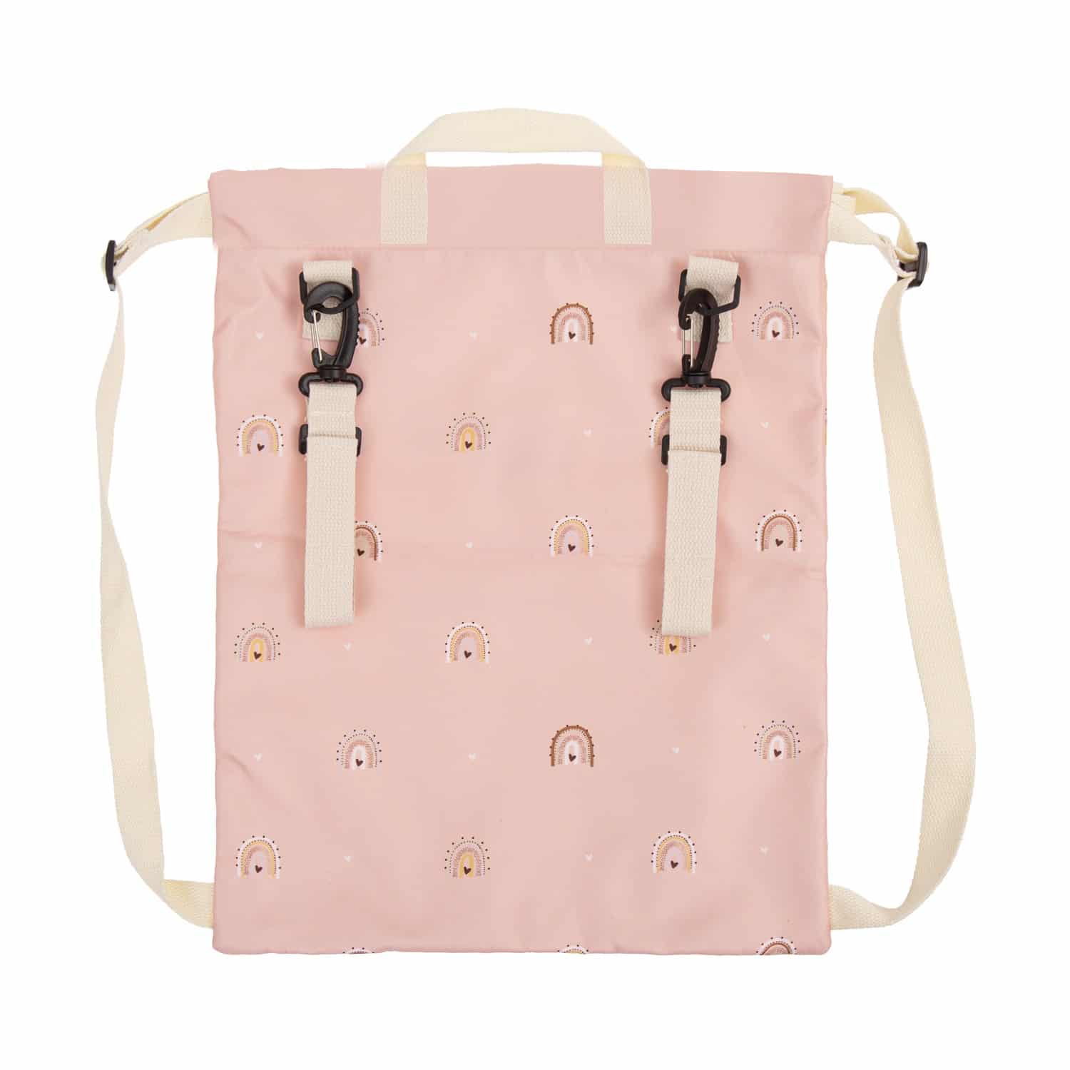 Perfecta para llevar la merienda con tirantes regulables y bolsillo delantero pequeño con cremallera.