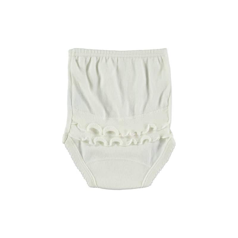 Cubrepañales de punto con volante trasero.COMPOSICIÓN: 100% ALGODÓN.CUIDADOS: Lavar a máquina – agua fría (30 ° max).