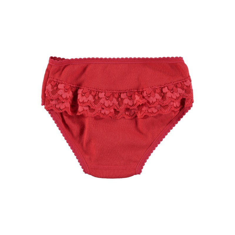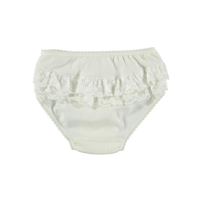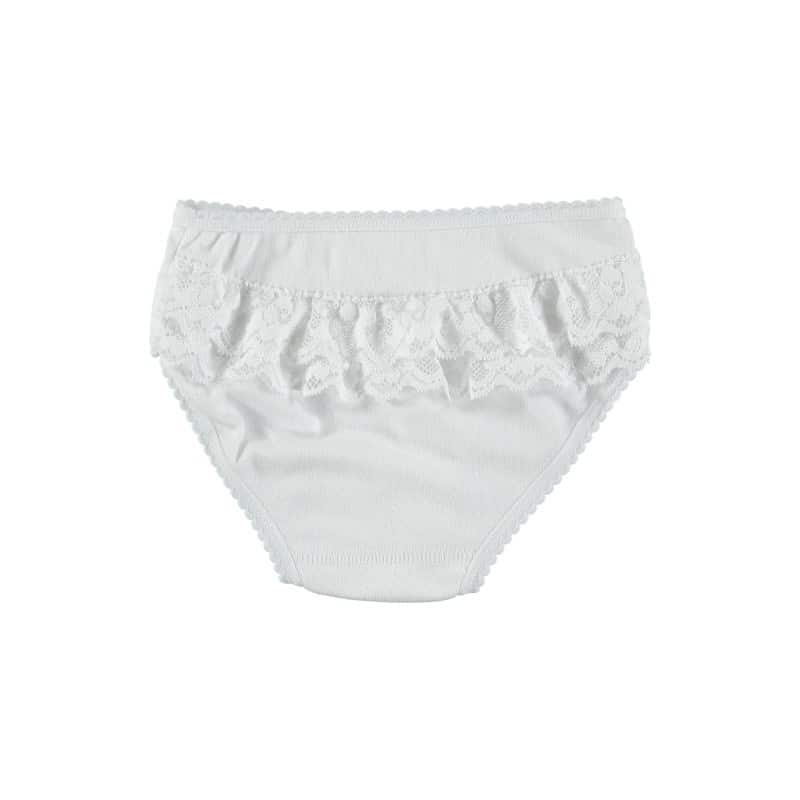 Braguita niña de punto con volante trasero. Disponible de 0 a 6 años.COMPOSICIÓN: 100% ALGODÓN.CUIDADOS: Lavar a máquina – agua fría (30 ° max).