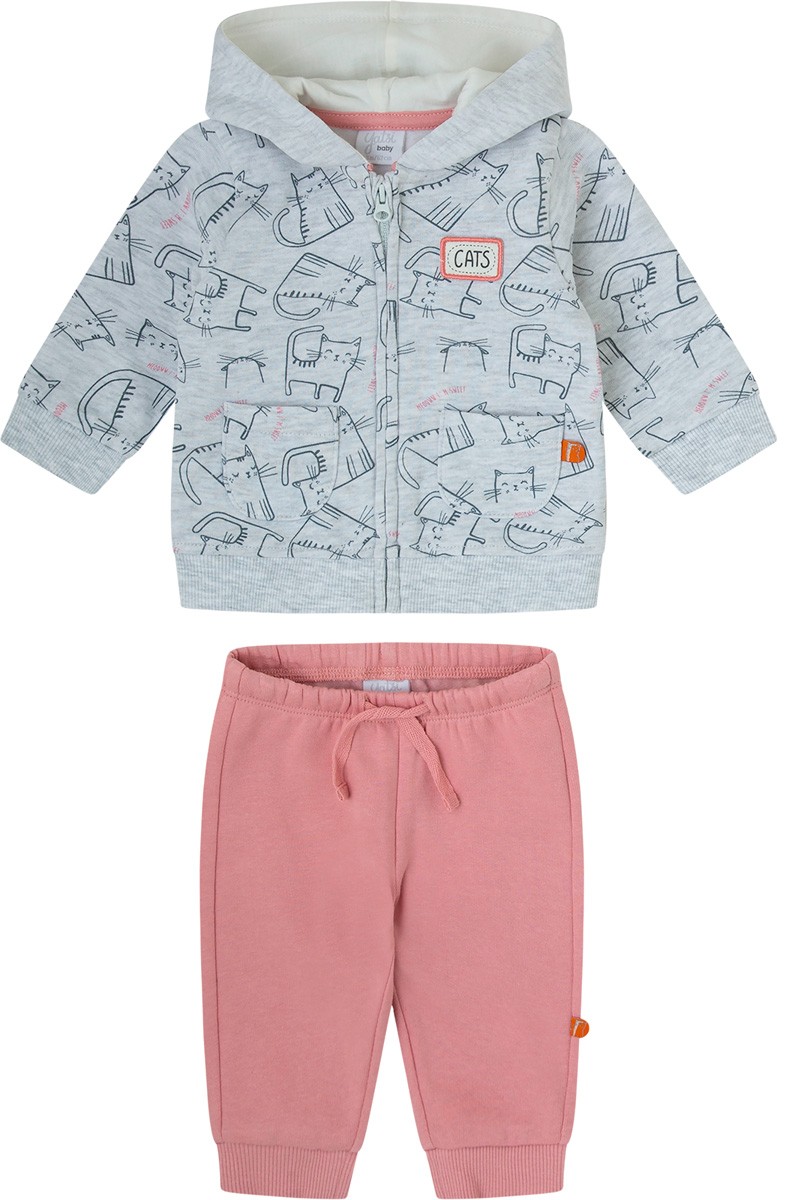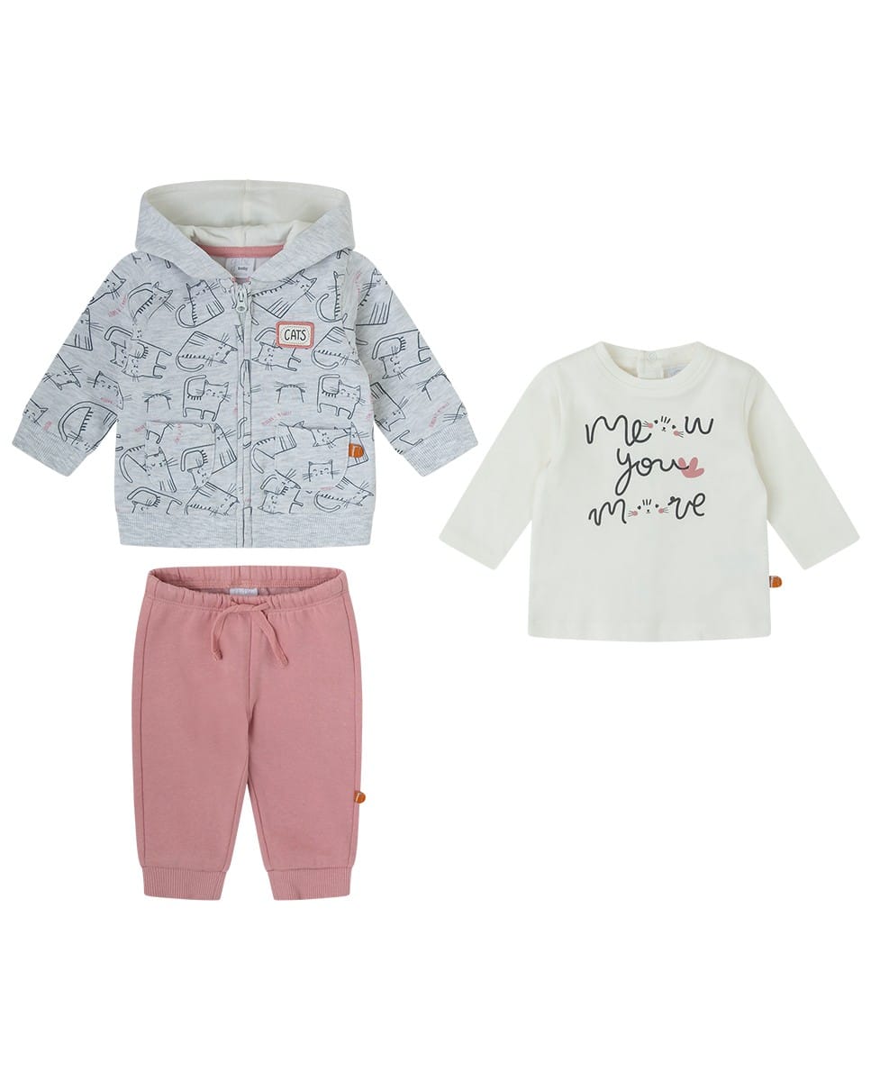 Chándal 3 piezas 100% algodón con interior afelpado en color gris y rosa maquillaje.