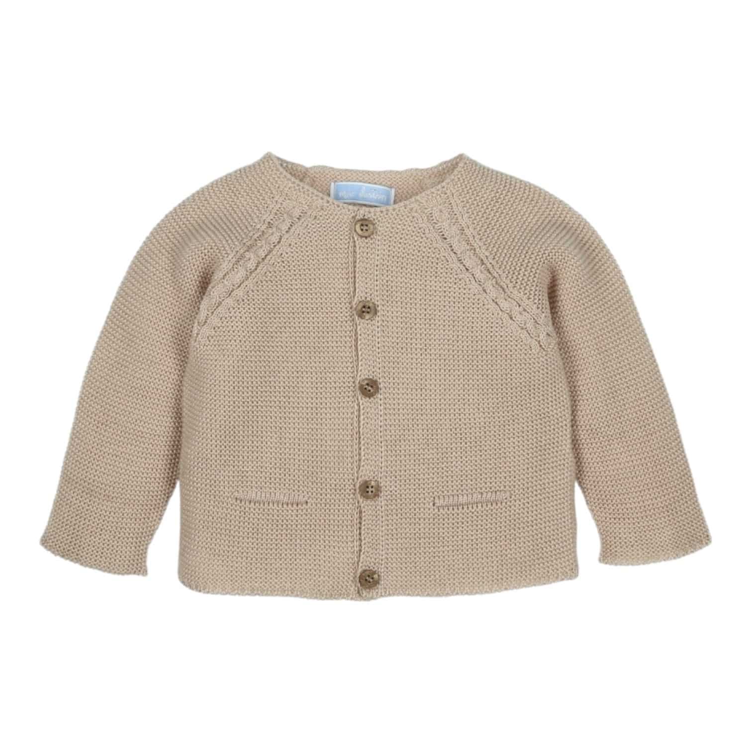 Chaqueta hilo perlé en color arena con detalle trenzados y bolsillos simulados.