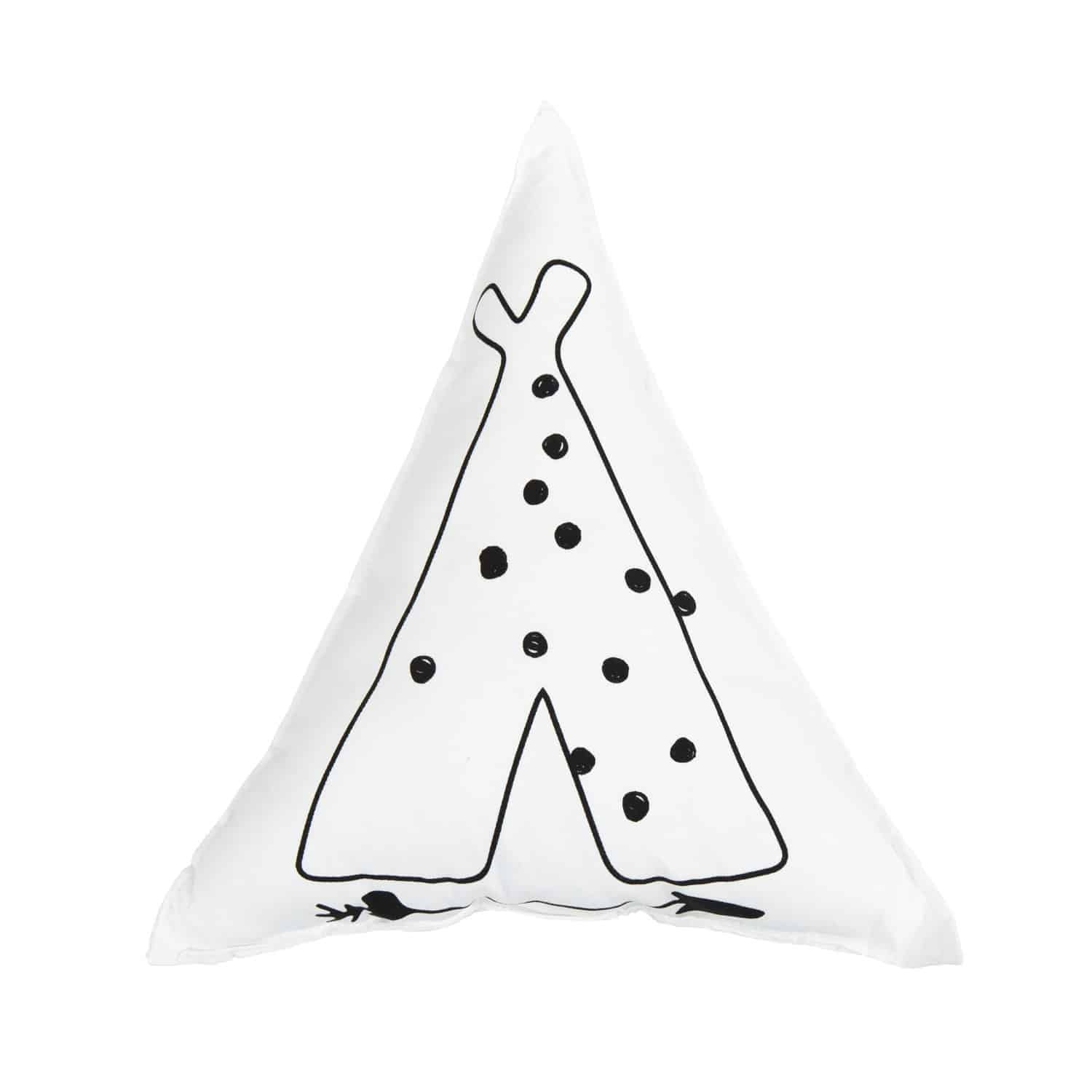 Cojín decorativo con forma de tipi en color blanco y gris oscuro.
