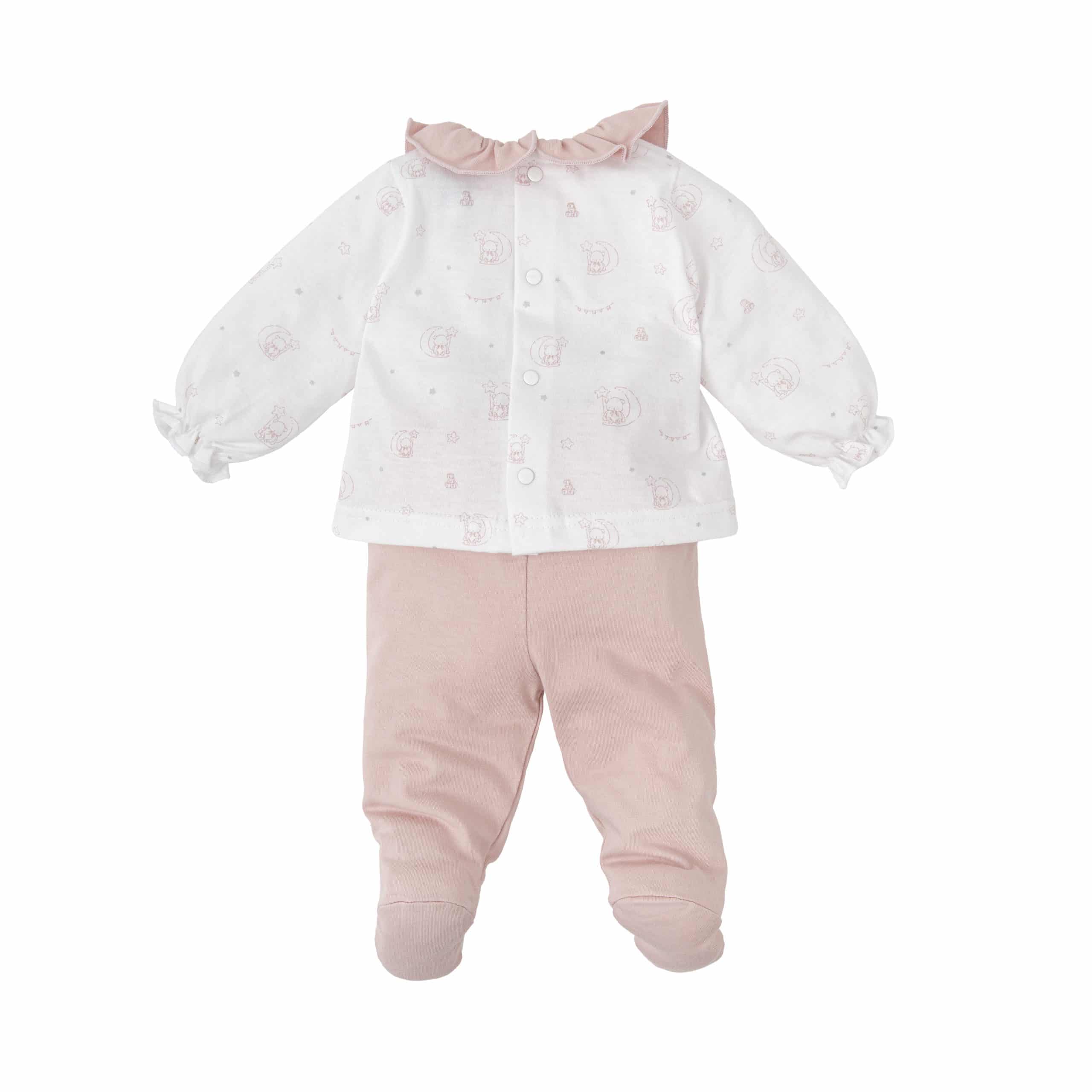 Conjunto ideal para la primera puesta de tu bebé. Con un tejido de algodón 100% super fresquito para los meses de primavera y verano.
