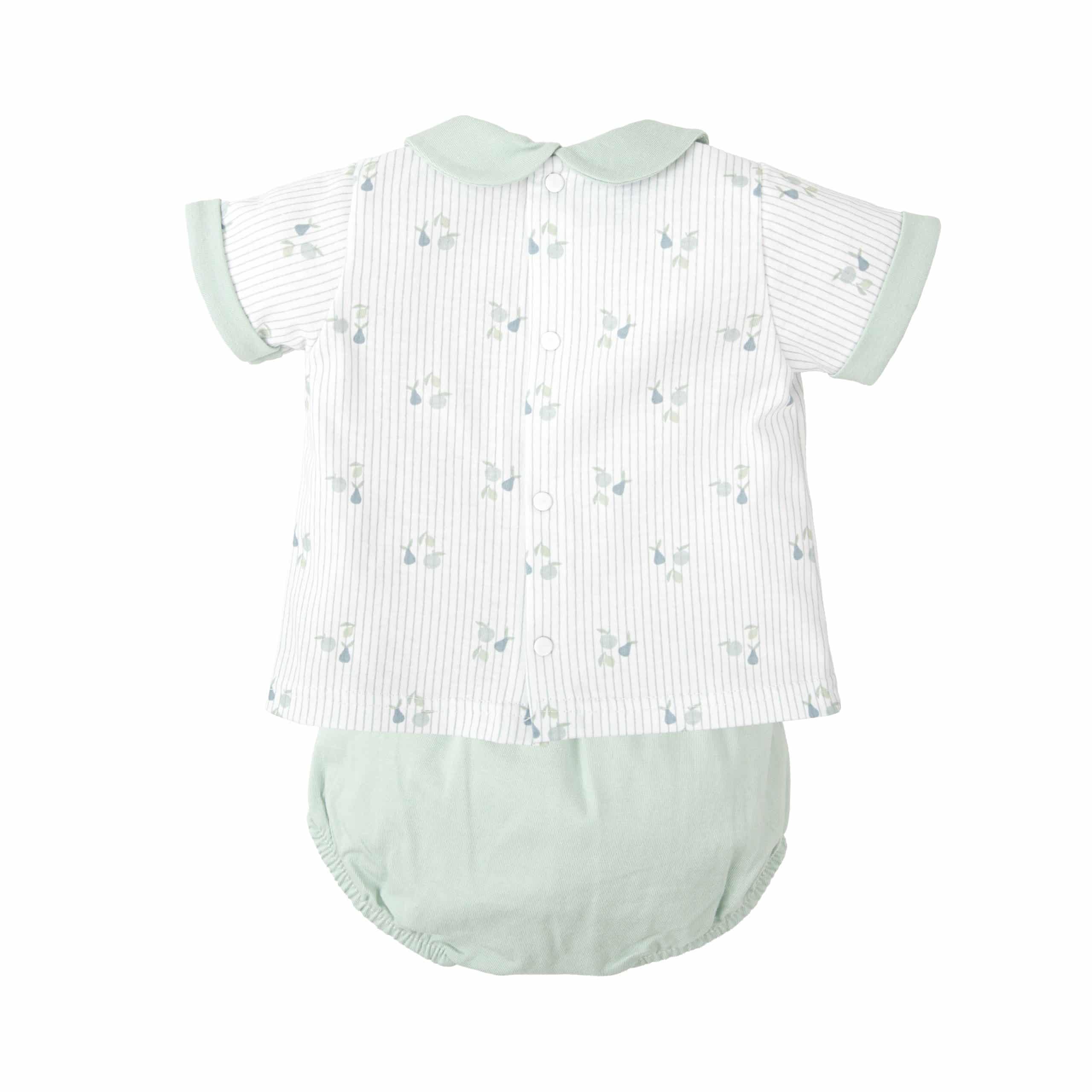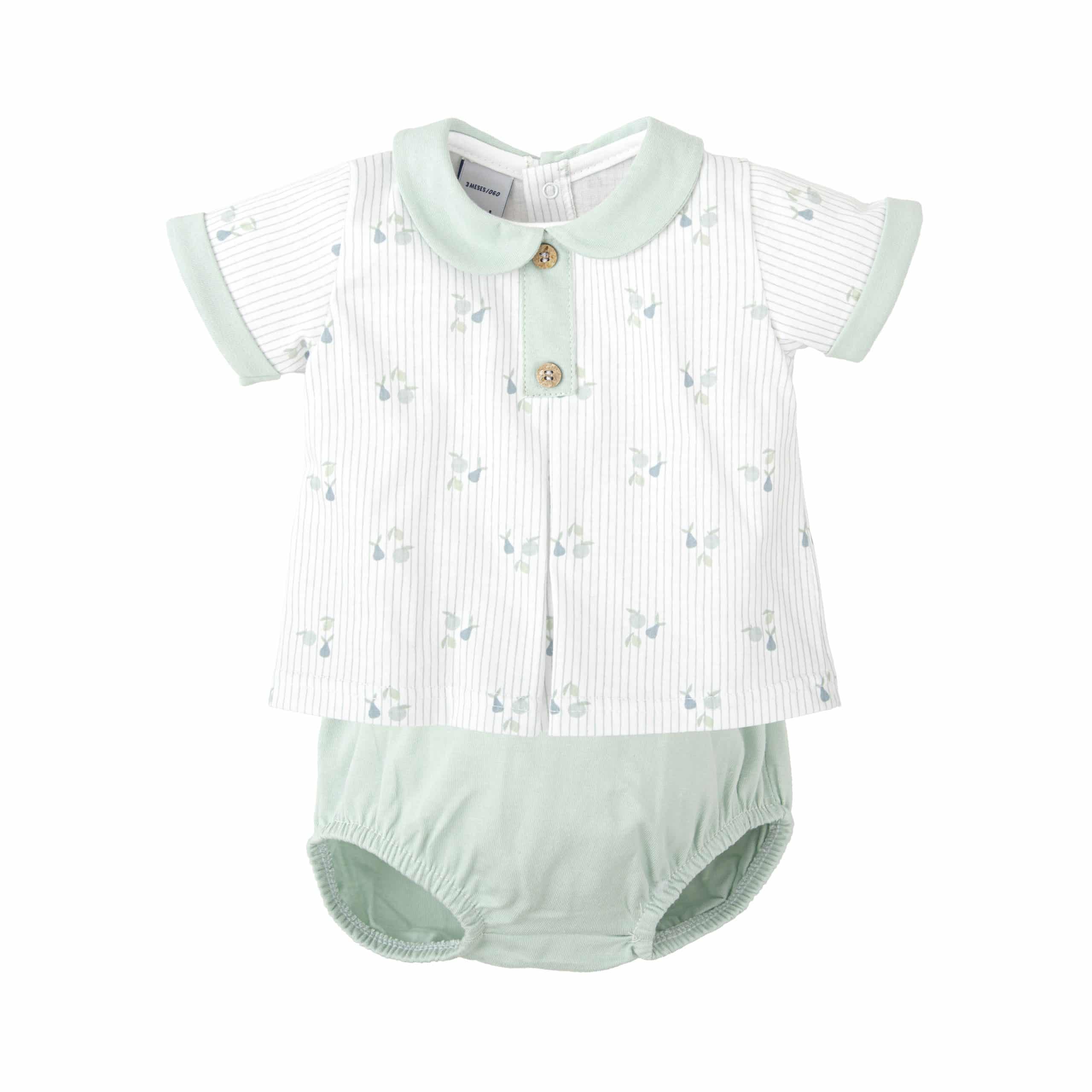 Conjunto ideal para la primera puesta de tu bebé. Con un tejido de algodón 100% super fresquito para los meses de verano.