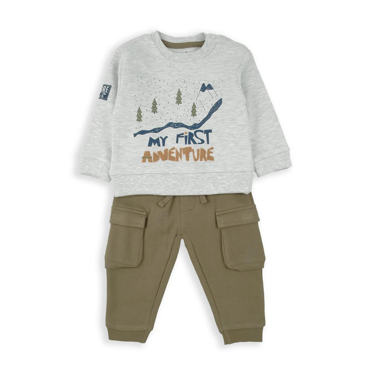 Pantalón afelpado de color verde militar y detalle bolsillos cargo a ambos lados.