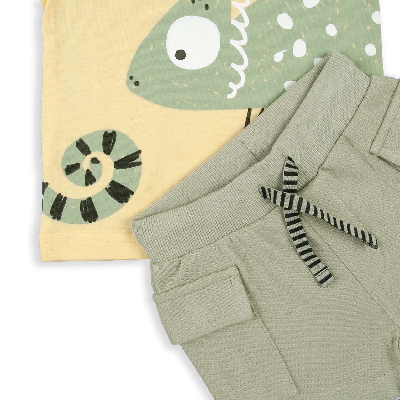 Conjunto 100% algodón en color amarillo pastel y caqui.