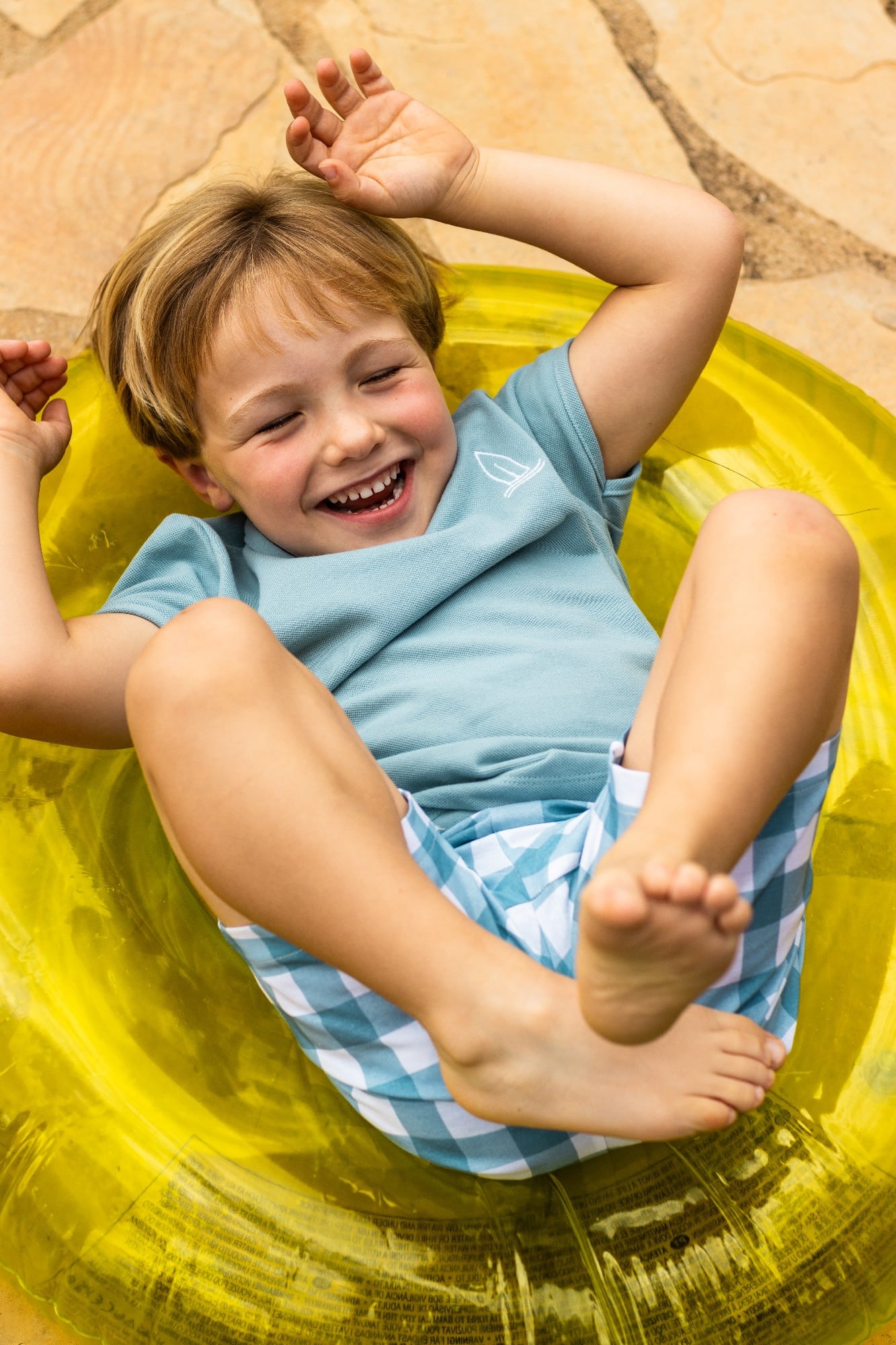 Camiseta de color verde con tejido polo y detalle bordado en el pecho. Apertura en cuello con corchetes.