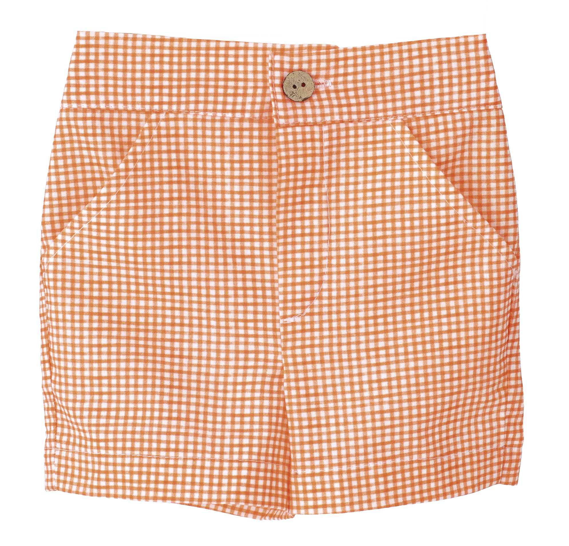 Pantalón con estampado cuadro vichy en color blanco y naranja.