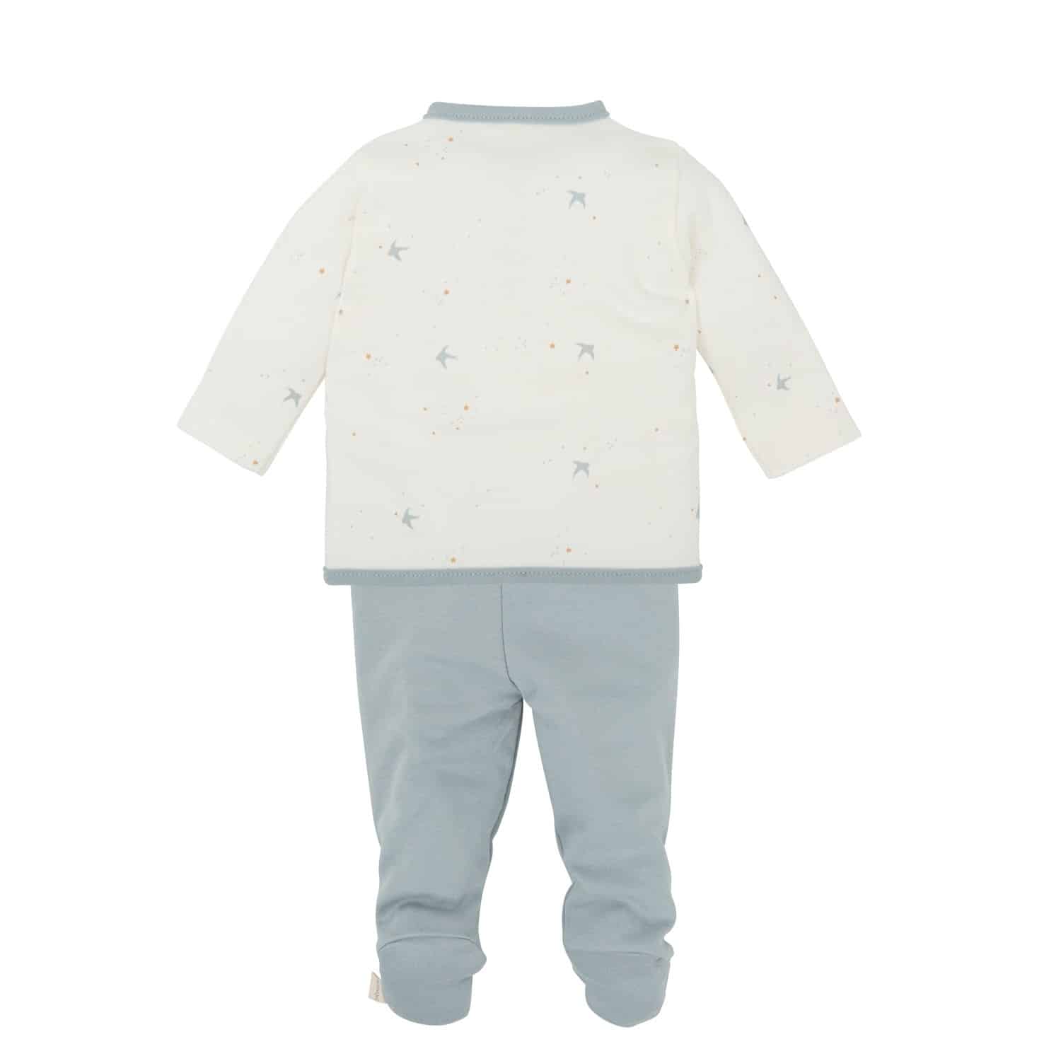 Conjunto dos piezas de algodón 100%, tejido elástico ideal para las primeras semanas de vida.