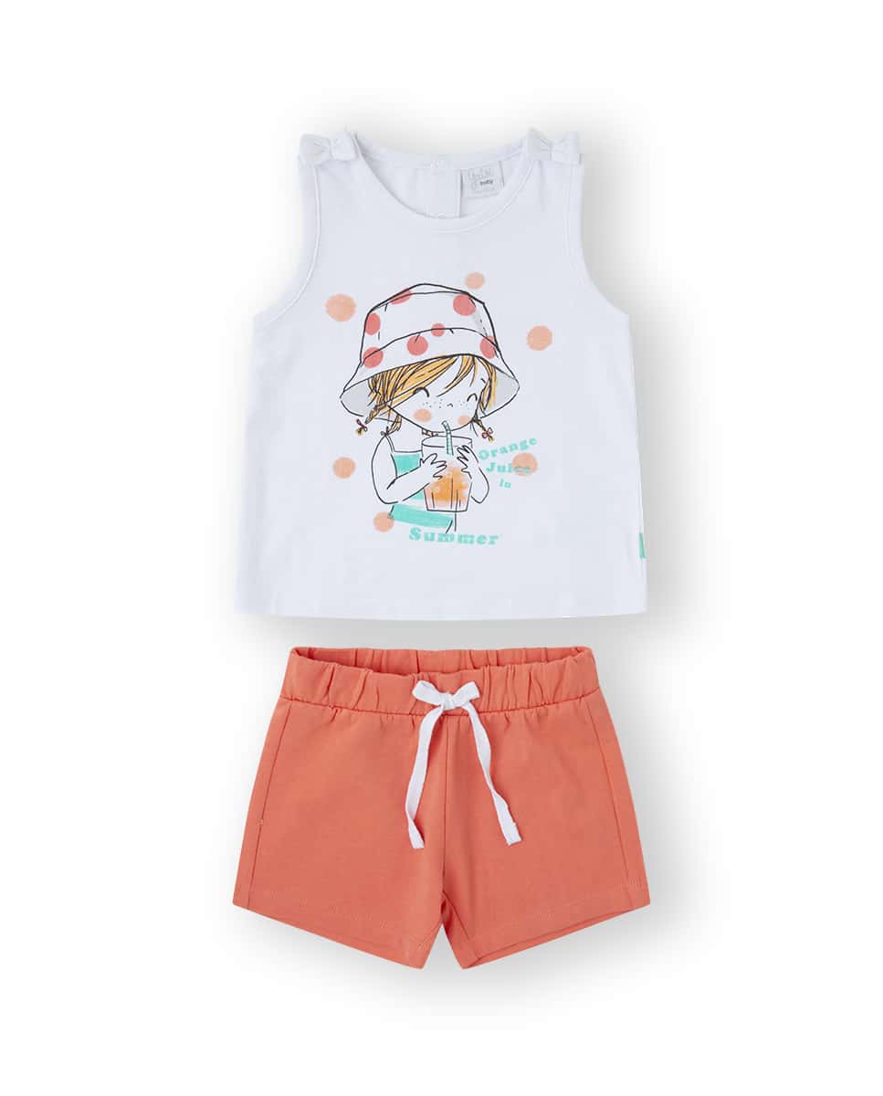 Camiseta de tirantes 100% algodón en color blanco con estampado muñeca.