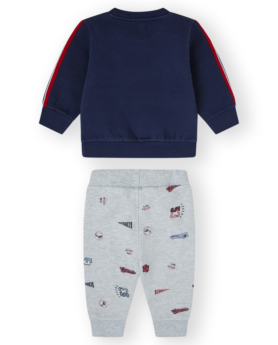 Conjunto 100% algodón con interior afelpado en color azul marino y gris.