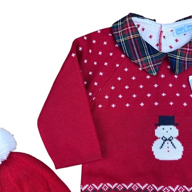 Conjunto de lana (Dralón) en color rojo con estampado navideño combinado con azul marino.