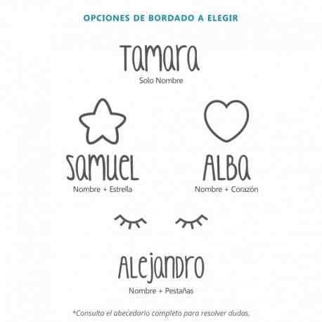 Escríbenos un mensaje en los comentarios con el nombre del bebé cuando proceses el pago del artículo o si lo prefieres escríbenos un whatsapp (666051660) con el número de pedido y nombre.