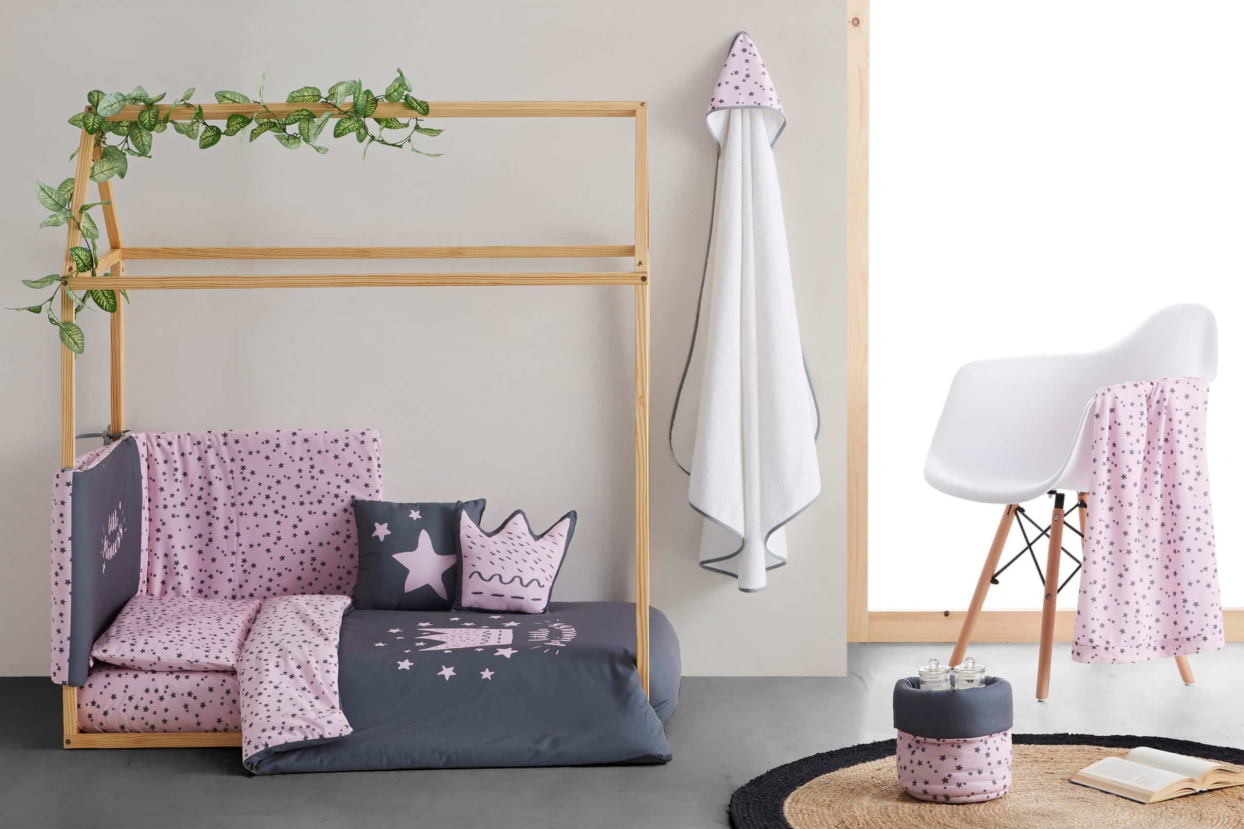 Edredón desenfundable de algodón 100% disponible en color celeste y rosa combinado con gris perfecto para utilizarlo en verano quitando el relleno y dejando solo la colcha.