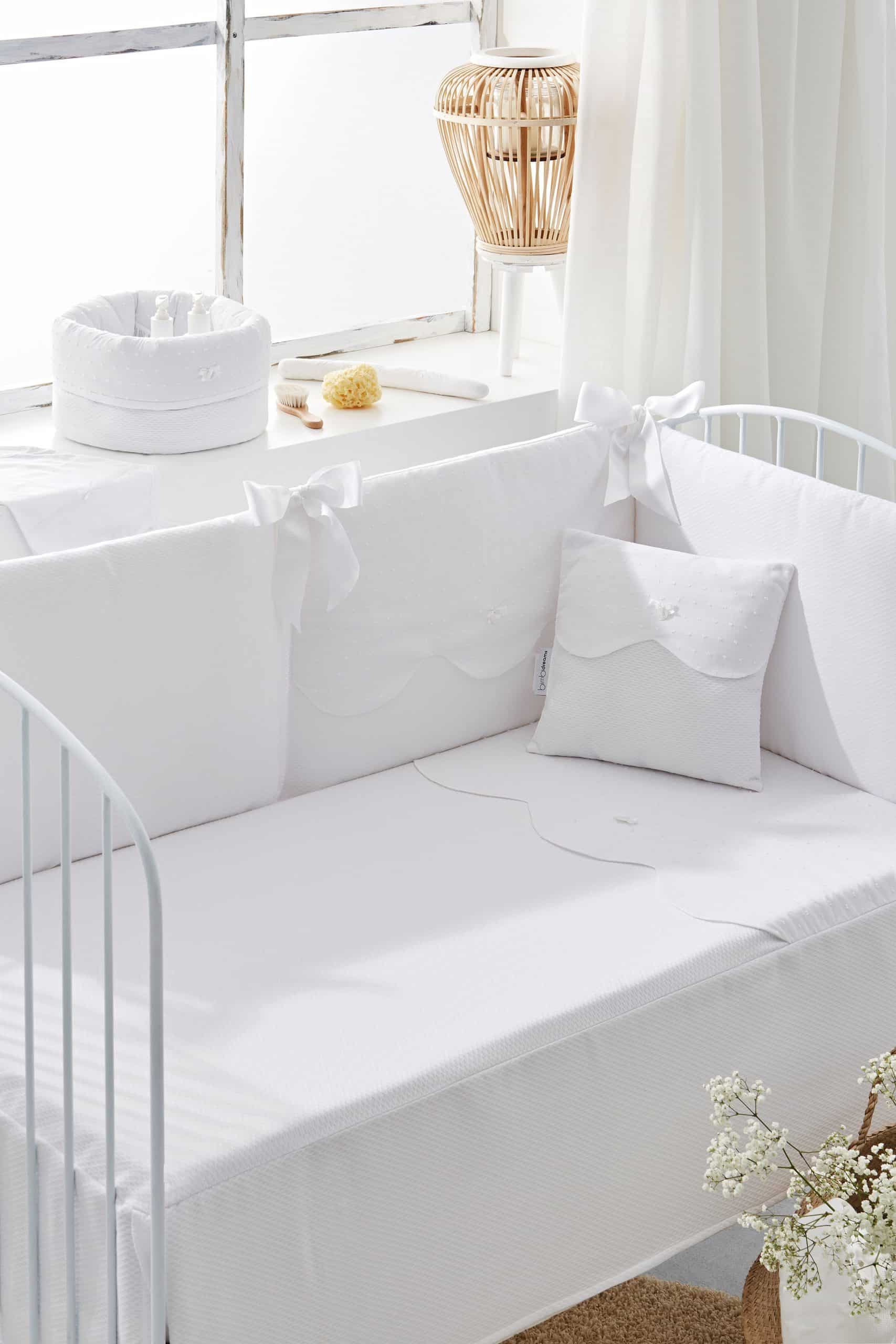 Protector combinado con tela plumeti y grandes lazos en satén.