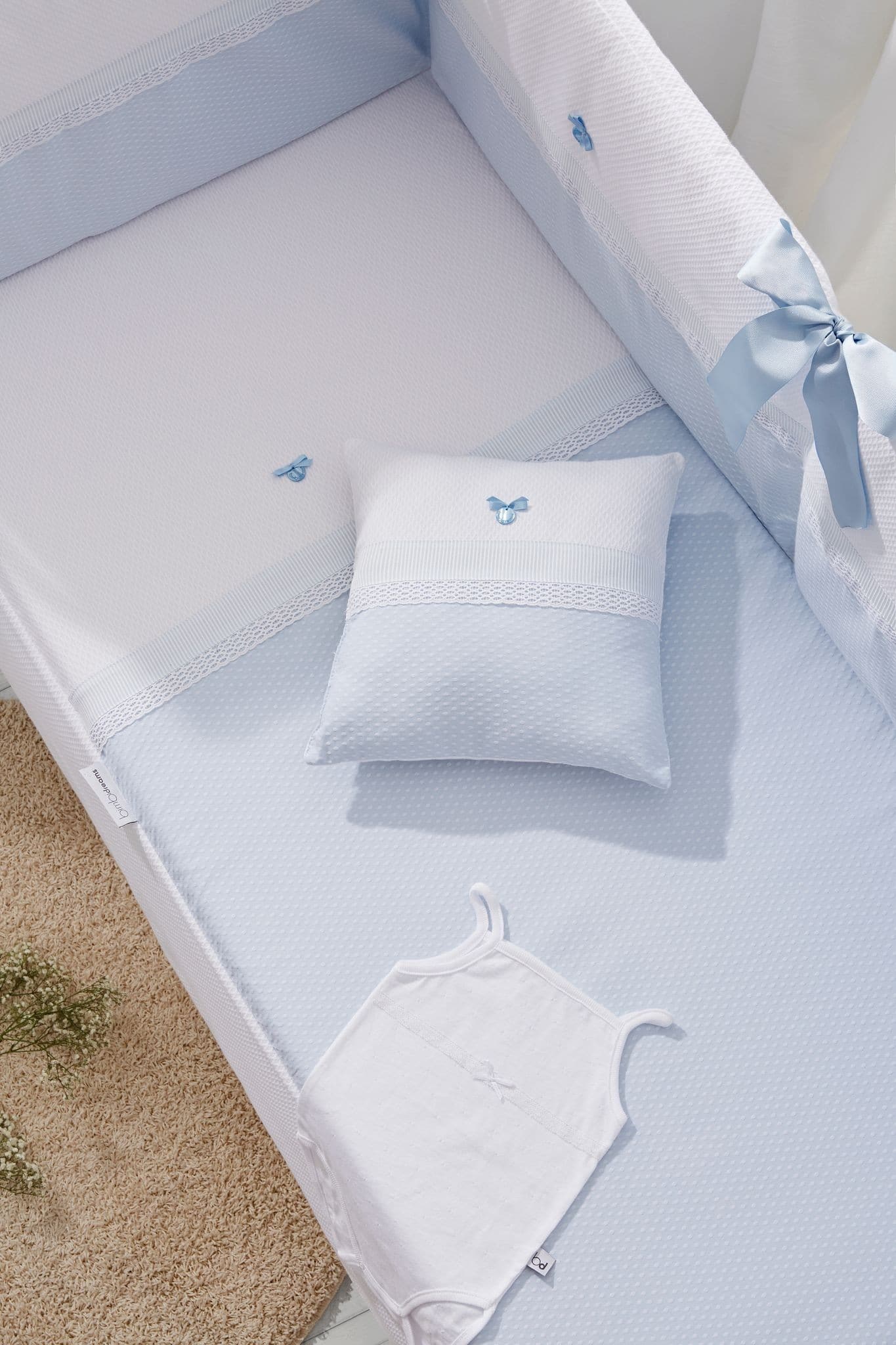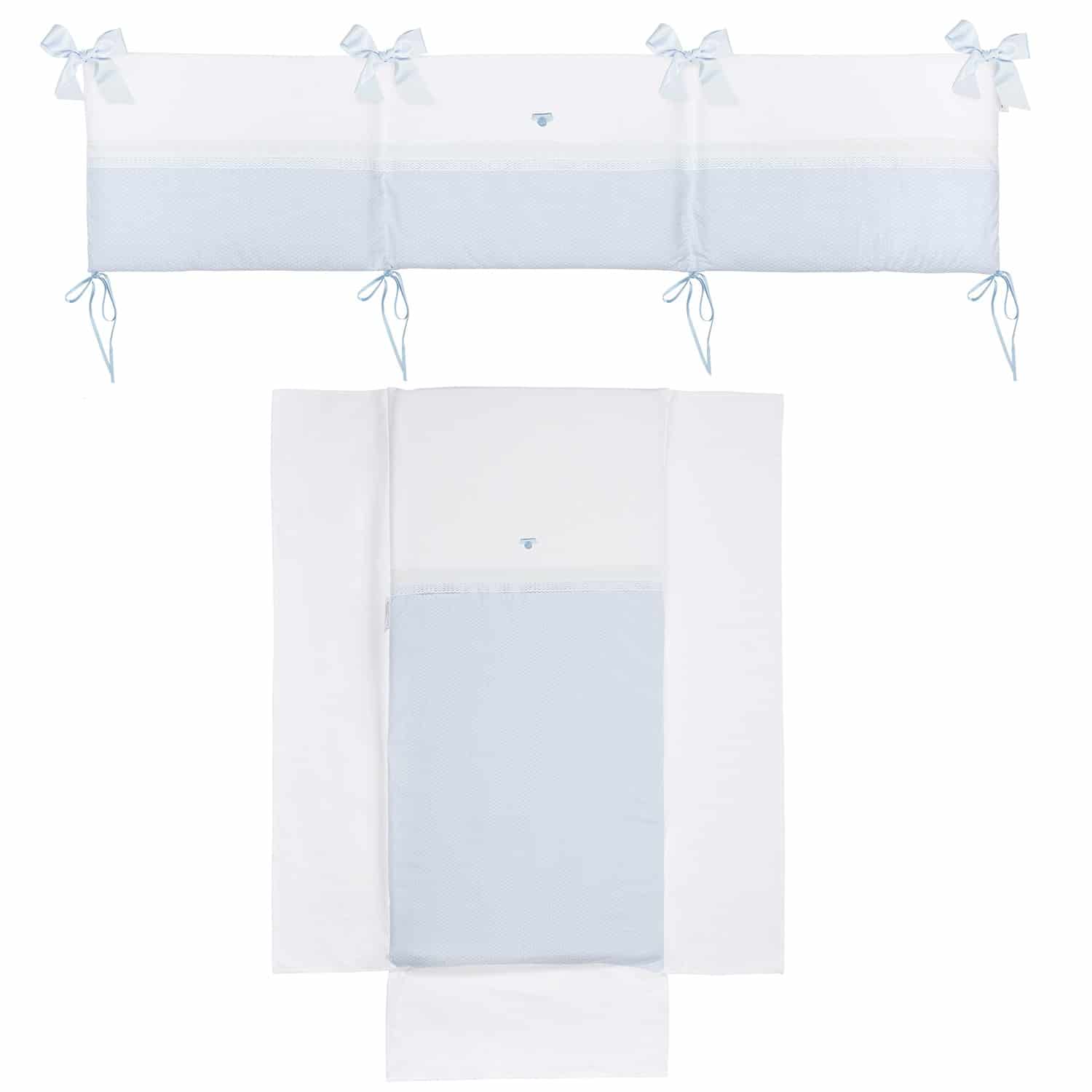 Edredón y protector para cuna y maxicuna de la colección Venecia Celeste.