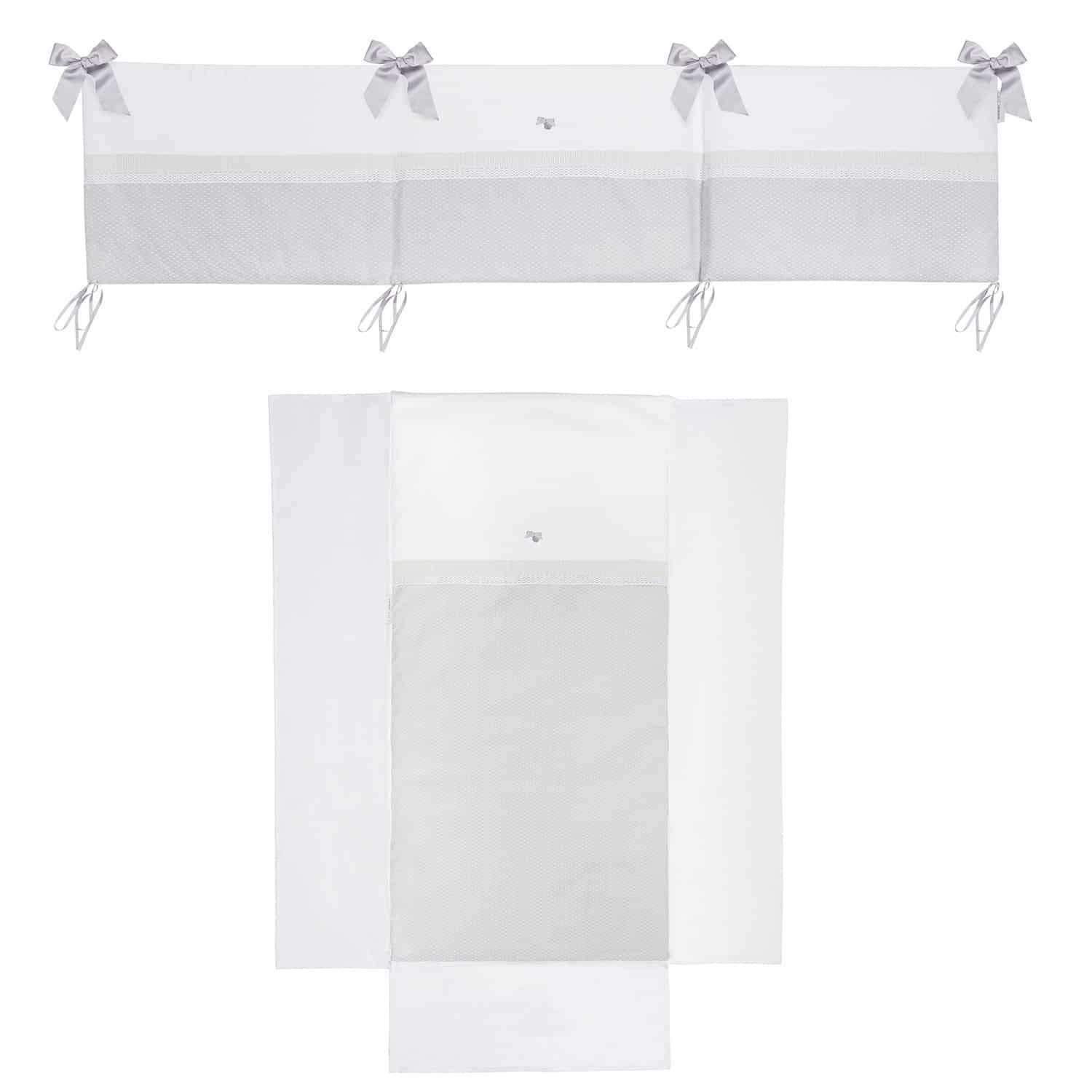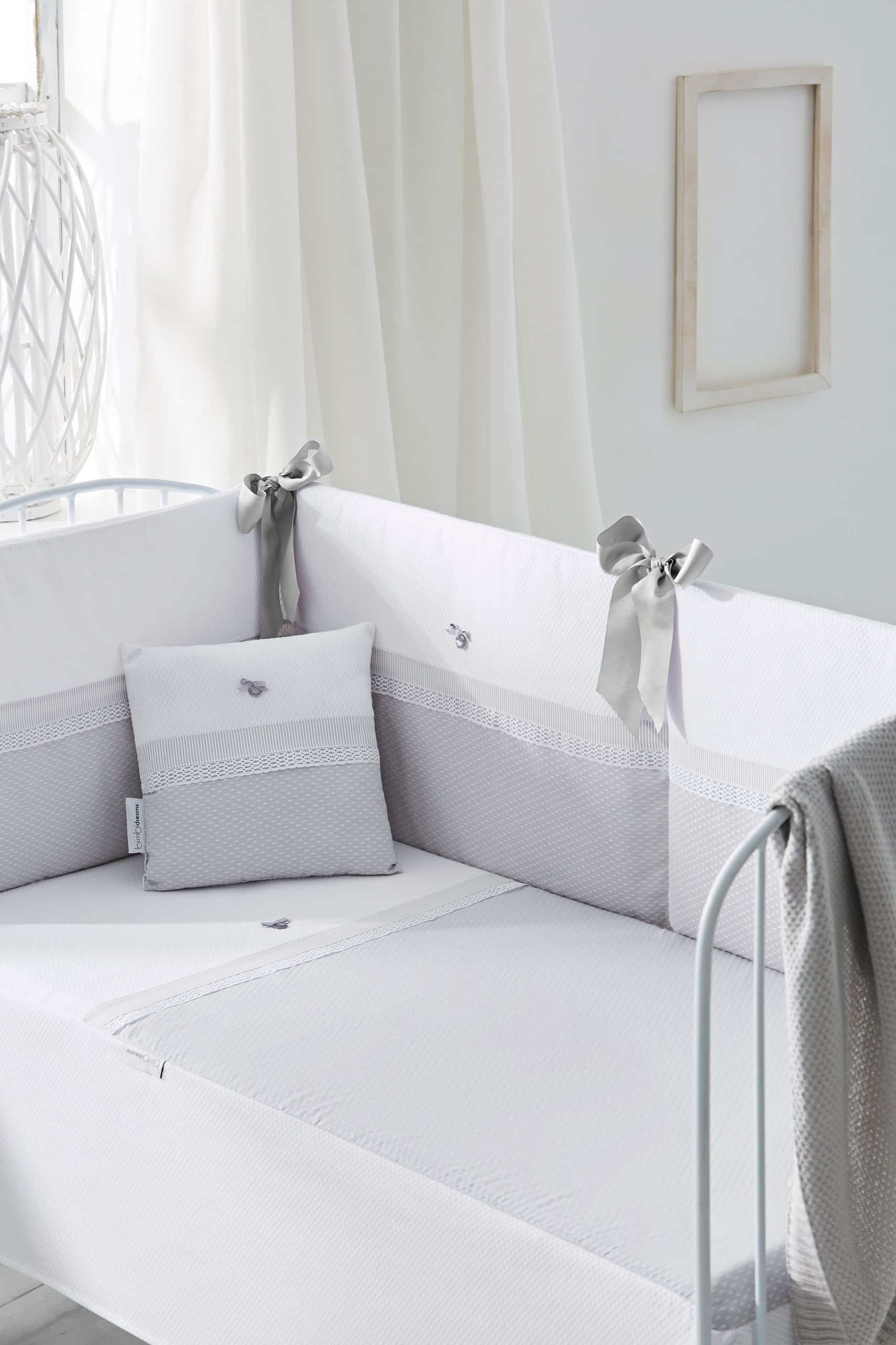 Edredón y protector para cuna y maxicuna de la colección Venecia Gris.
