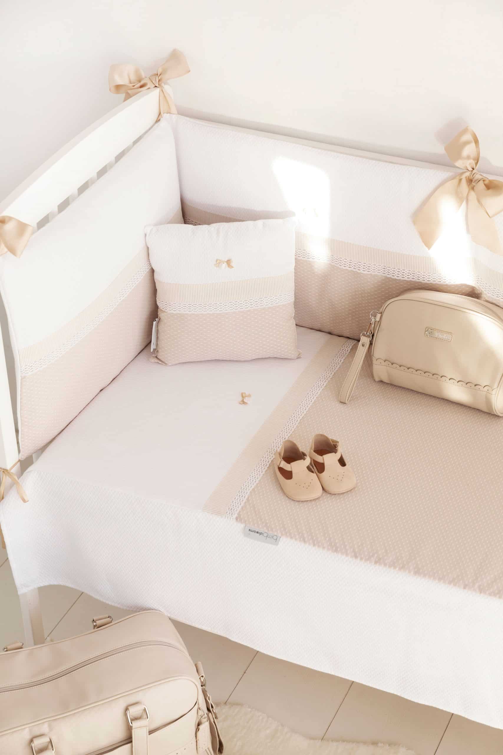 Edredón y protector para cuna y maxicuna de la colección Venecia Lino.