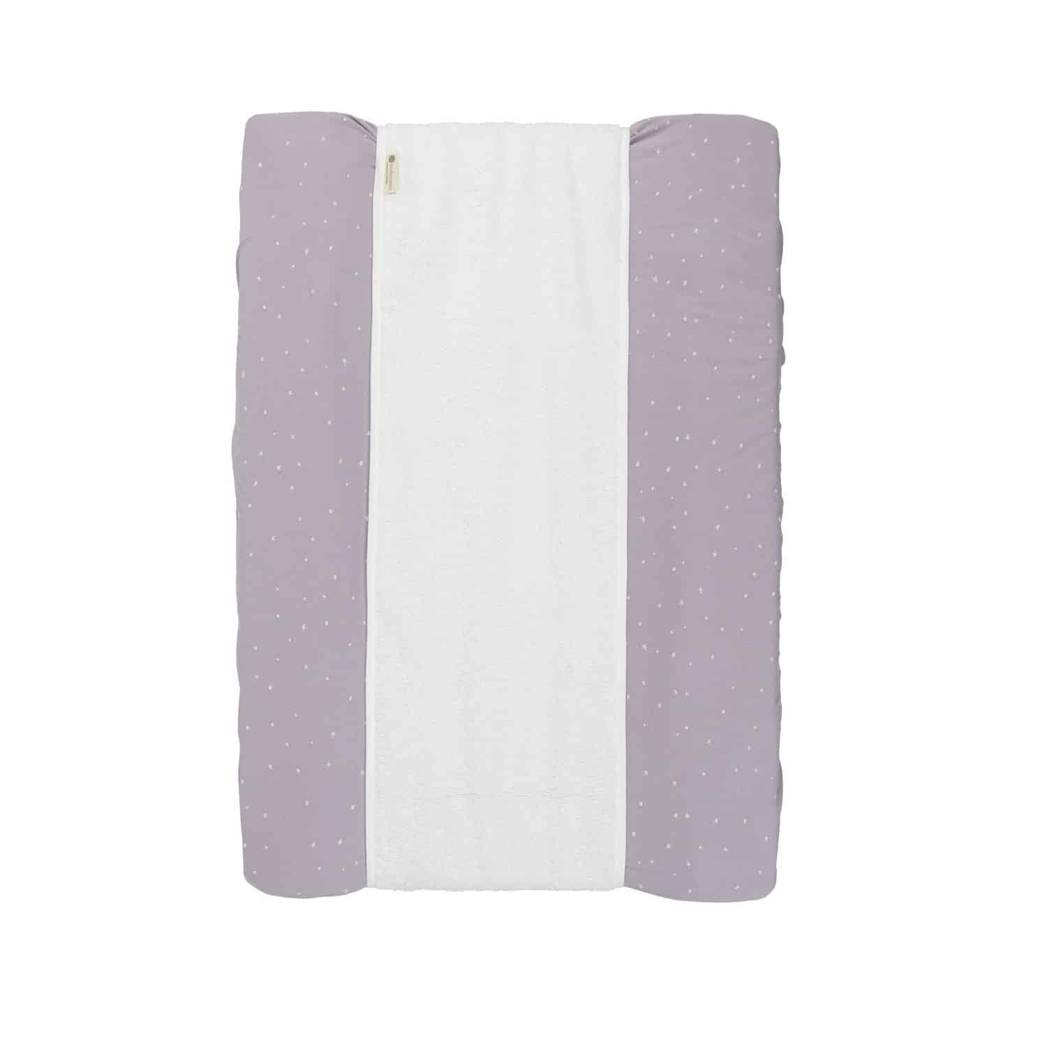 Funda cambiador bañera bebé ajustable, combinada en algodón 100% a los lados y rizo en la parte central.