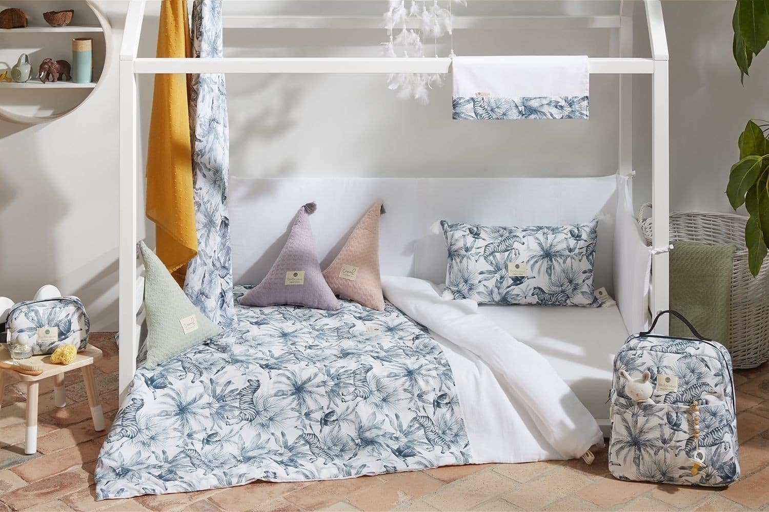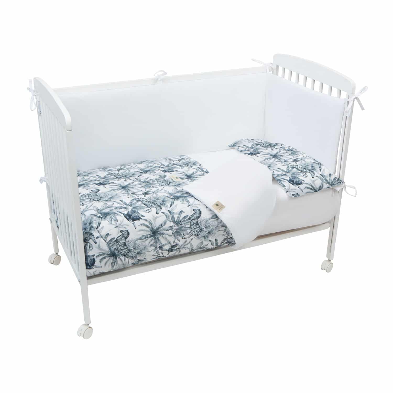 Funda nórdica de color lino con estampado de cebras en tonos gris y blanco.