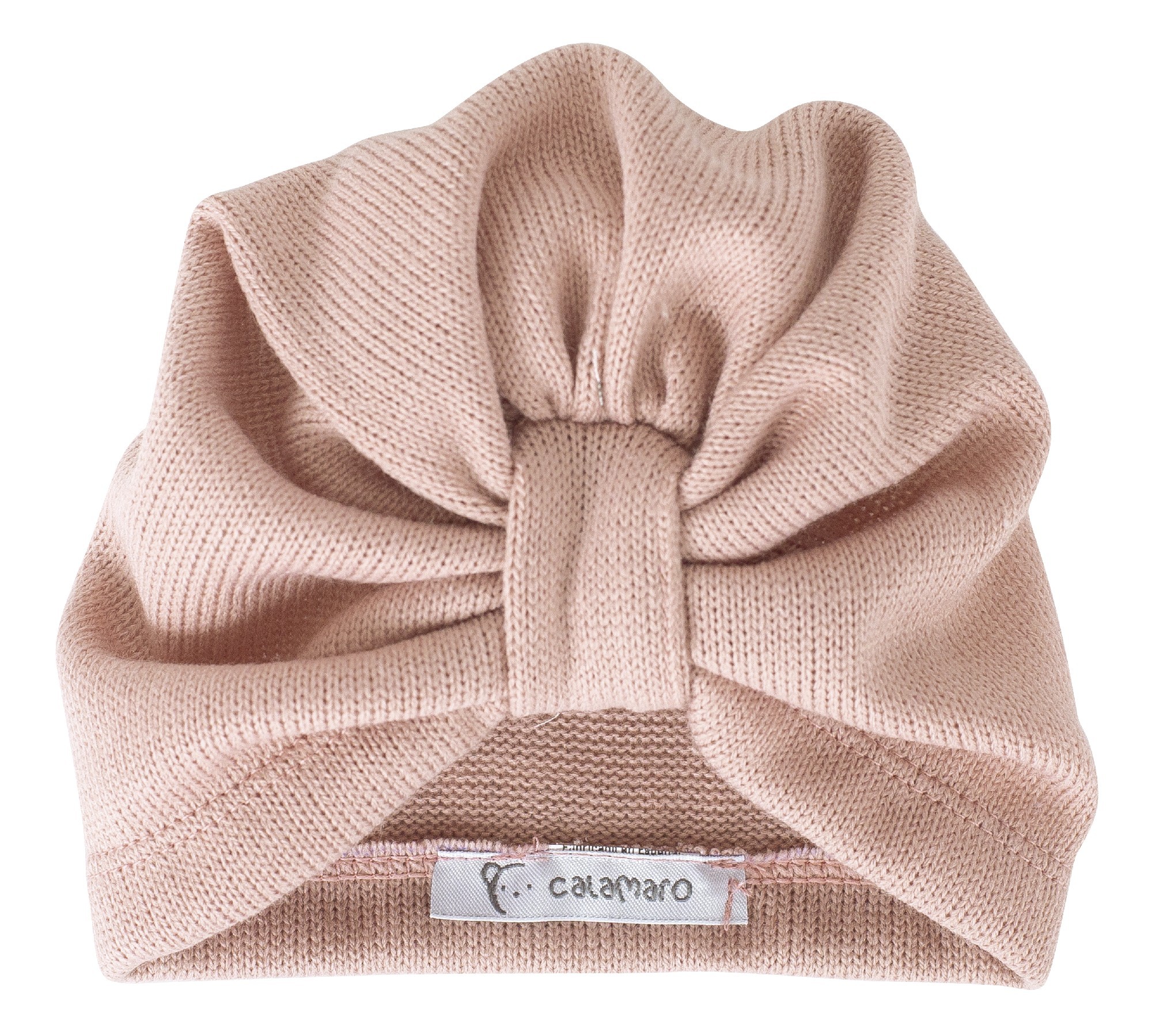 Gorrito bebé de algodón cálido disponible en tres colores: Rosa Empolvado, Azul Francia y Gris.