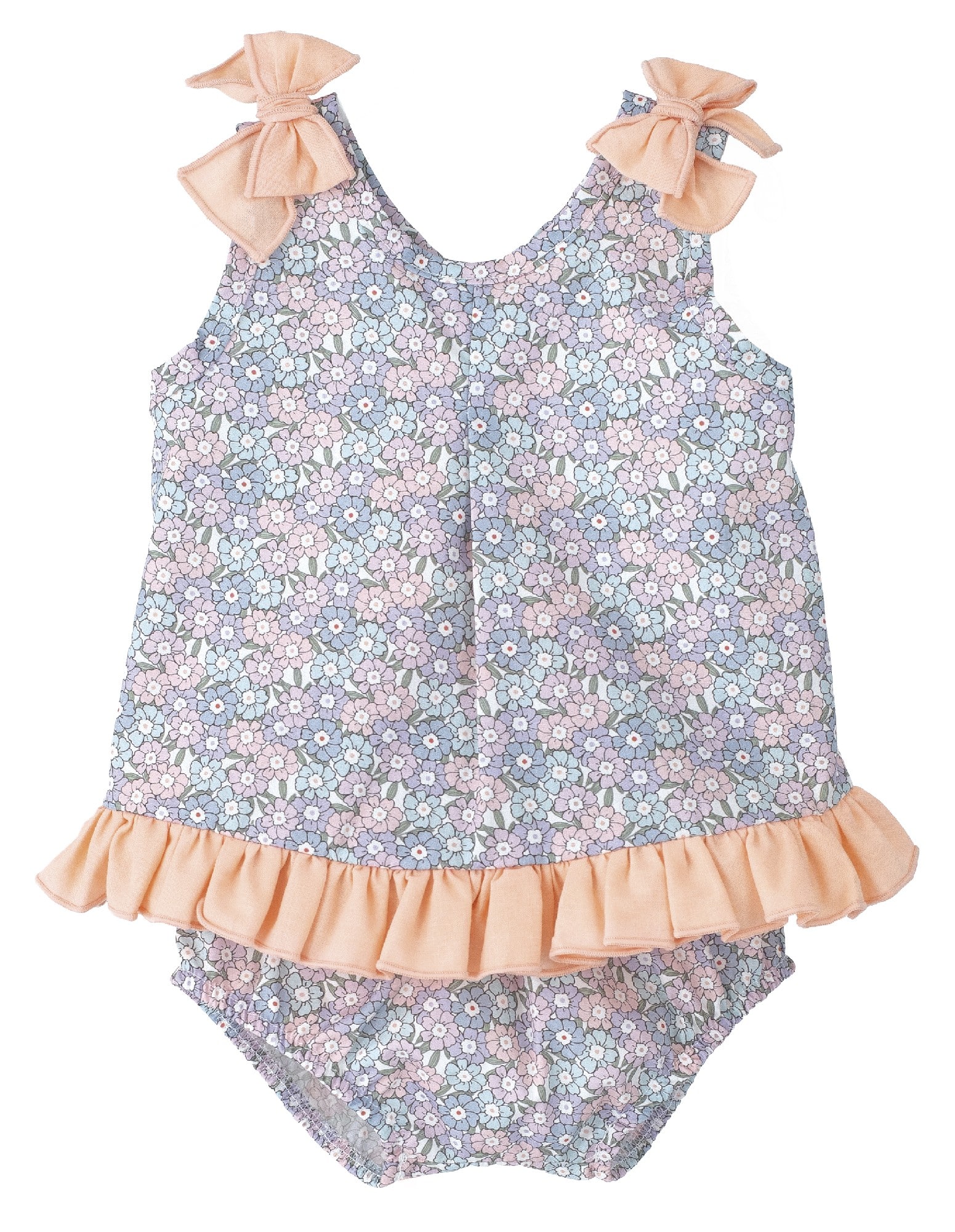 Jesusito con estampado de flores en color azul empolvado y salmón.
