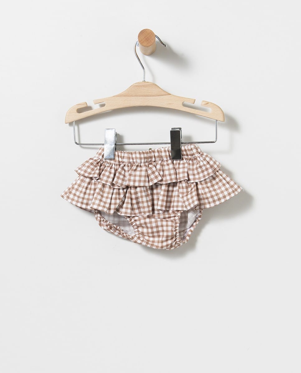 Ranita con estampado de cuadro vichy en marrón y Beige con volantes.