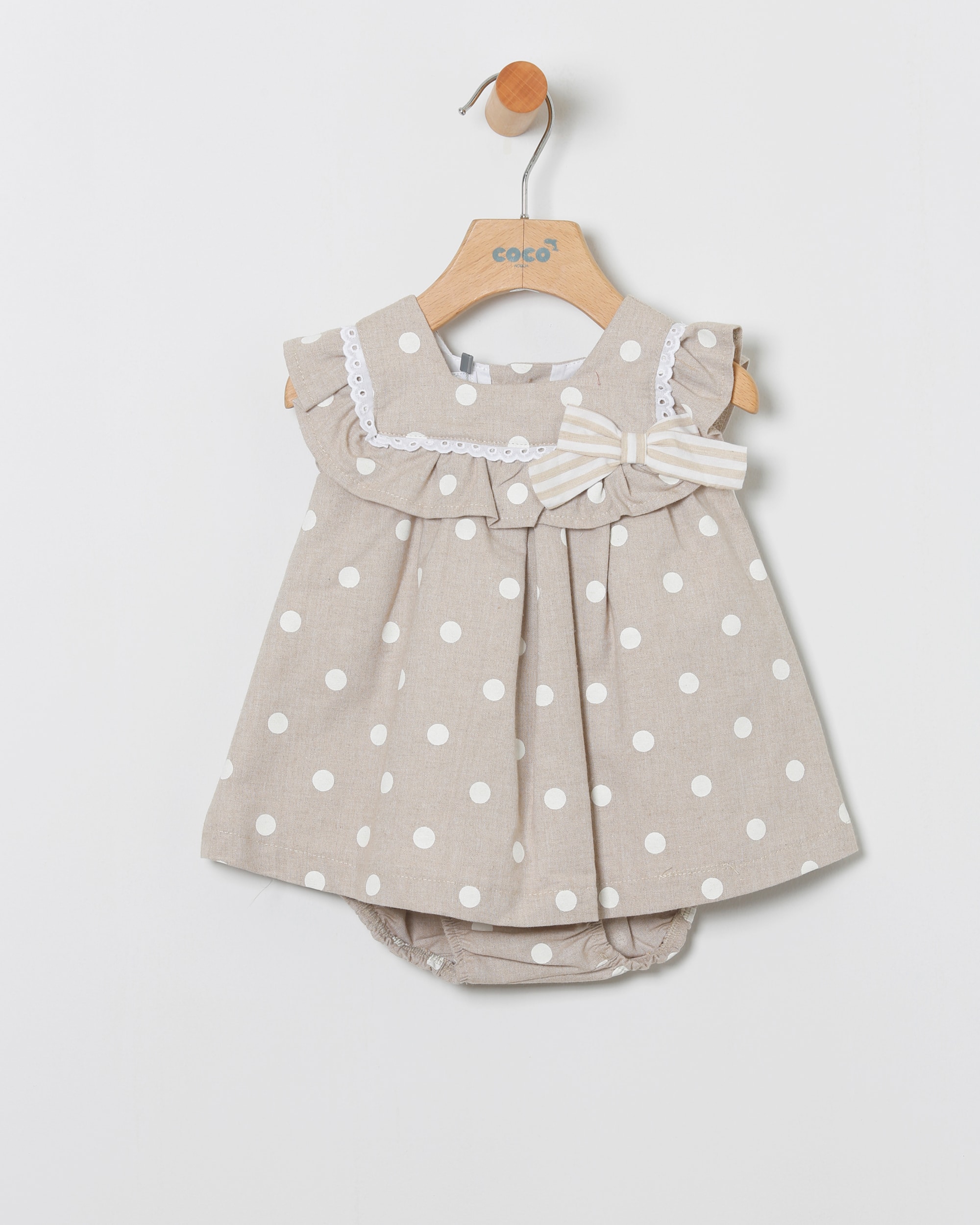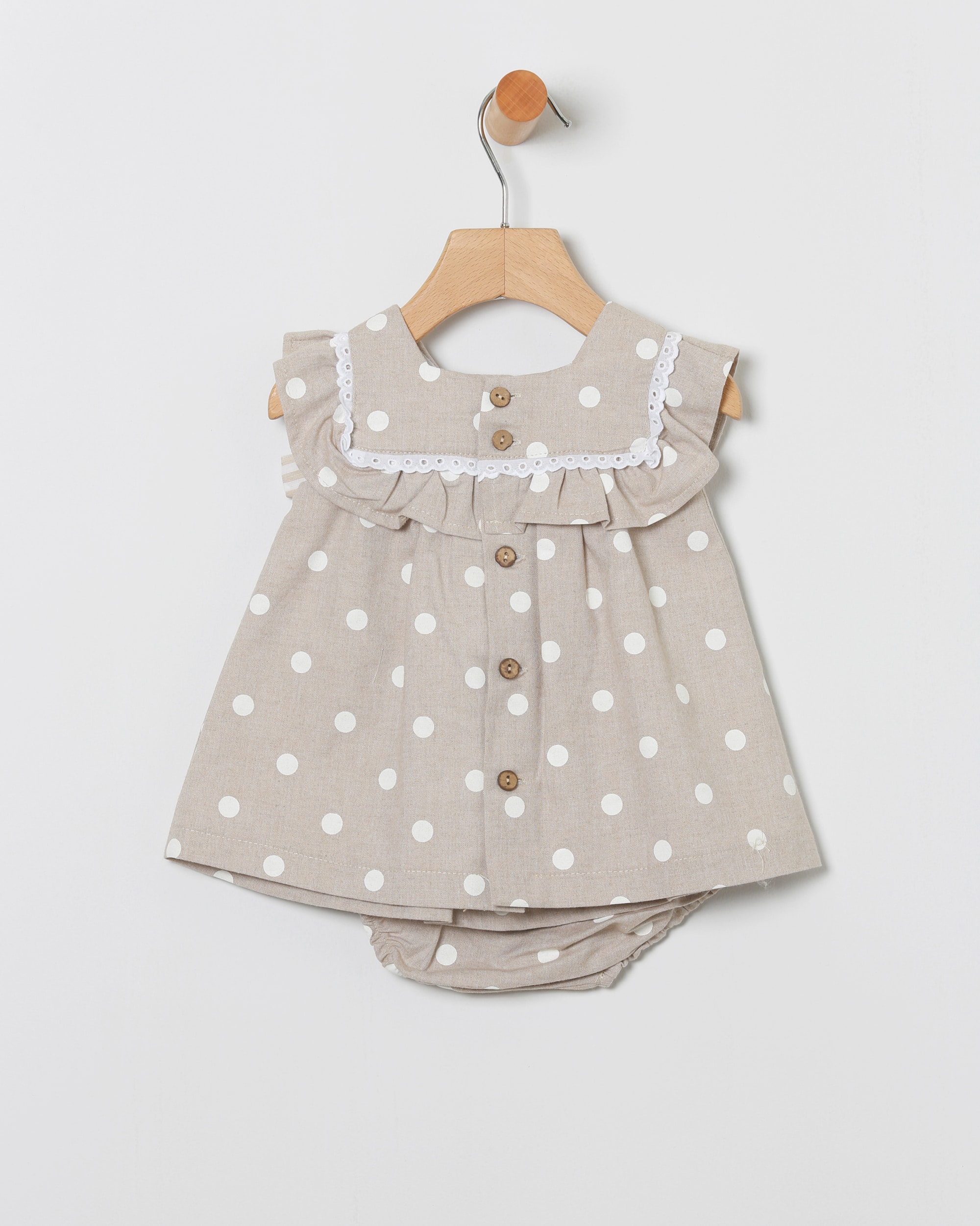 Jesusito con tejido de lino en color arena y estampado de lunares.