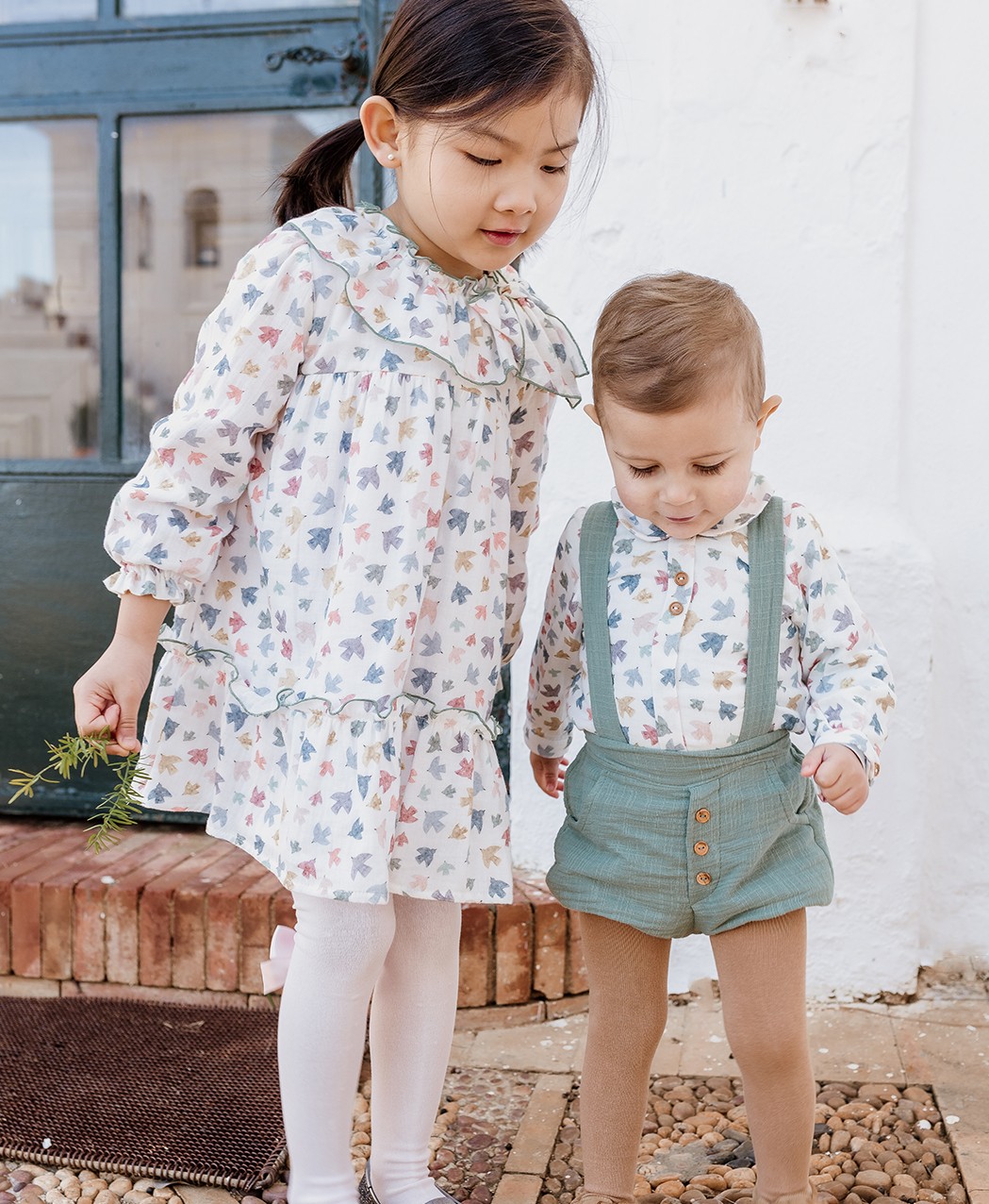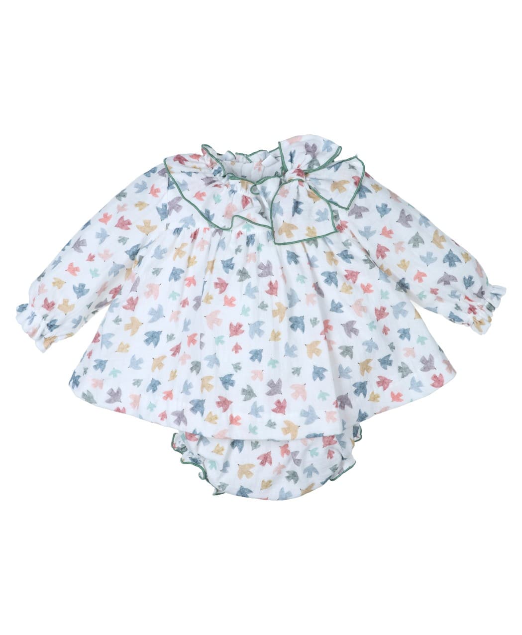 Jesusito de bambula en color blanco con estampado de pájaros en colores.
