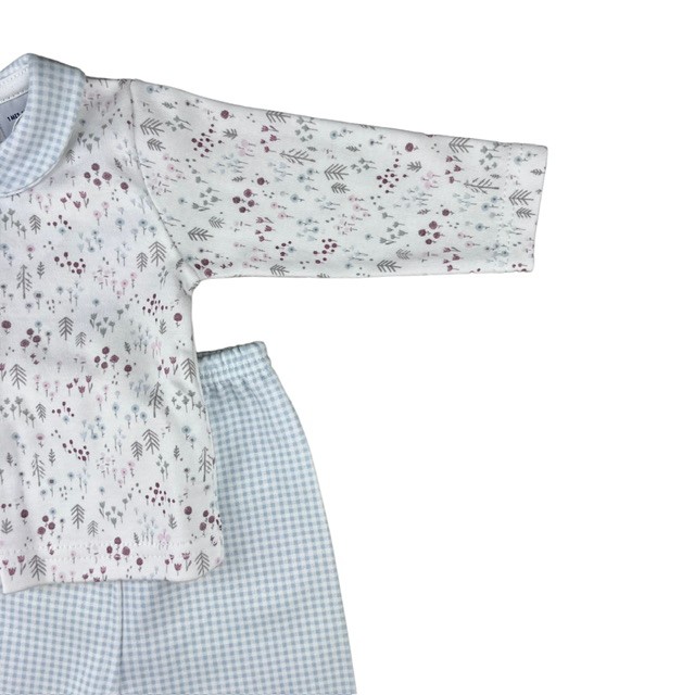 Conjunto 100% algodón en color azul y blanco con estampado arbolitos.
