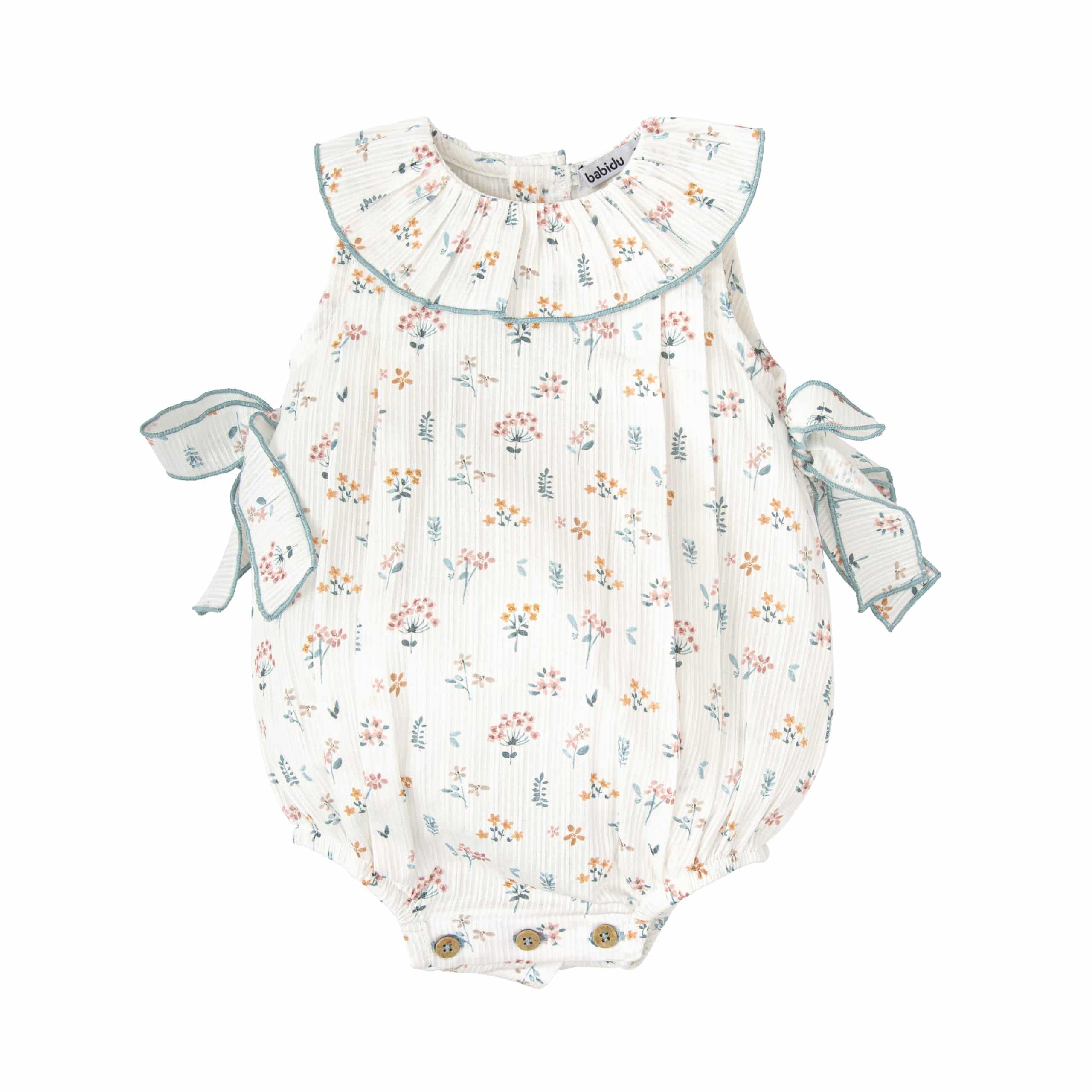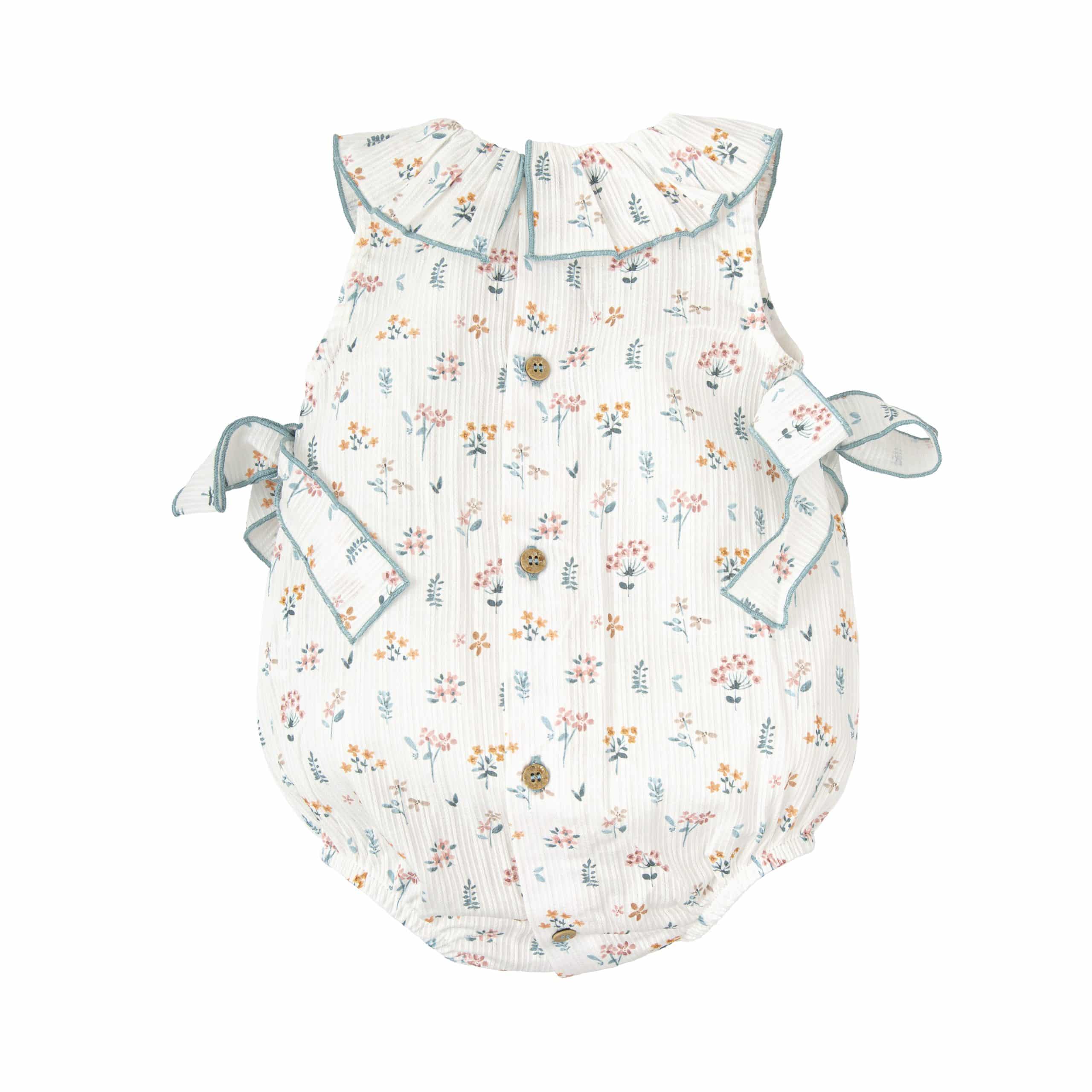 Pelele de color blanco con estampado de flores en tonos azul.