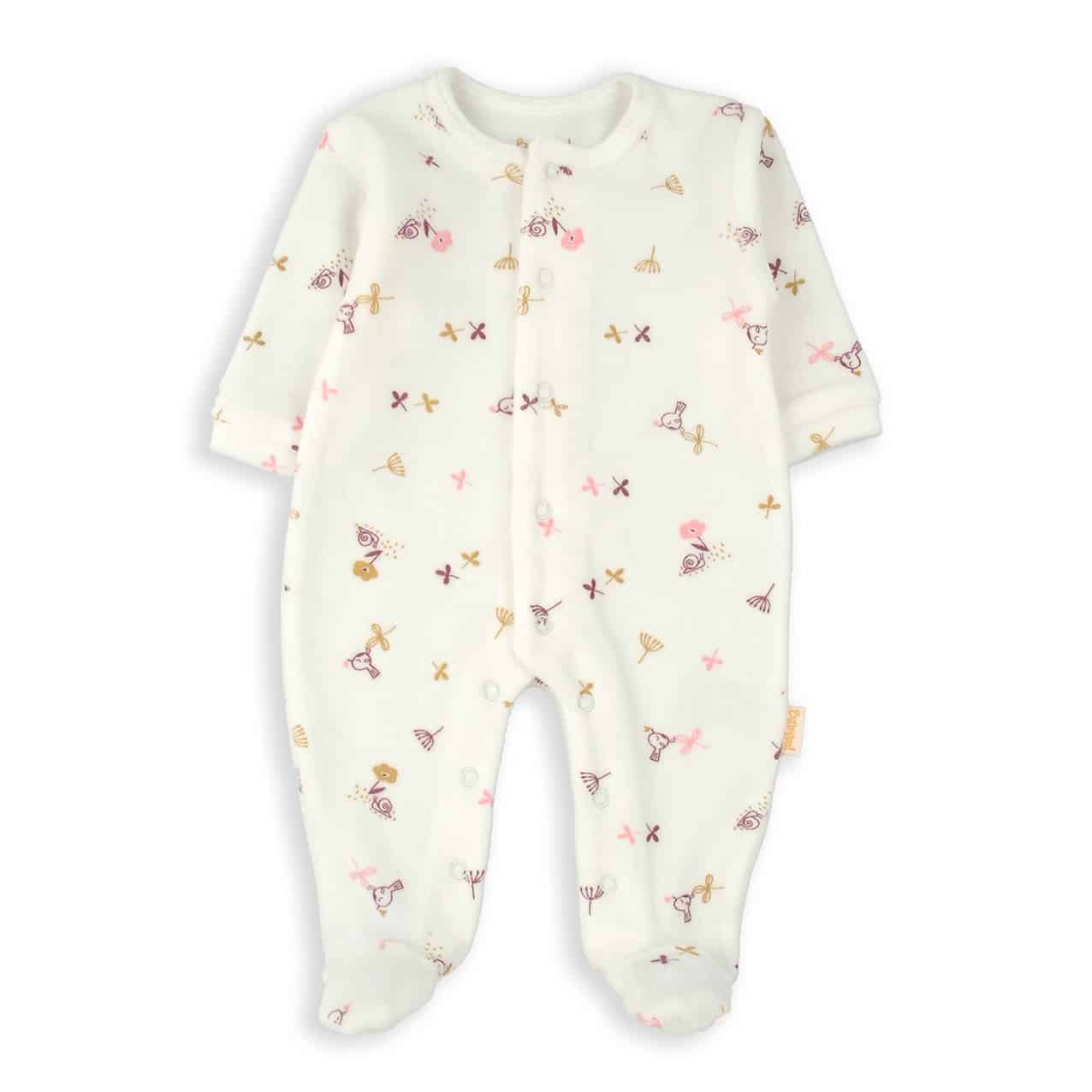 Pelele 100% algodón tundosado de color gris claro con dibujos en azul.
