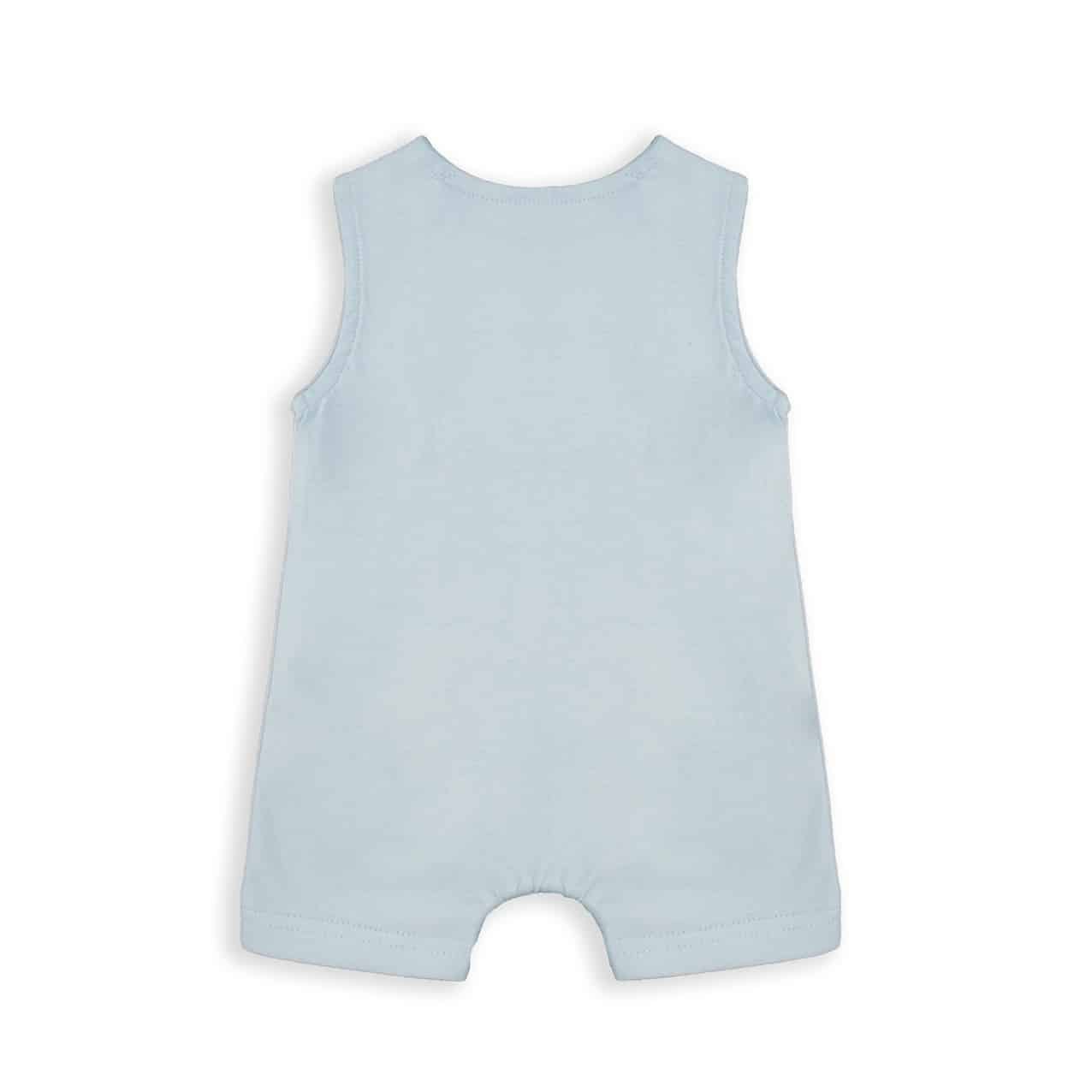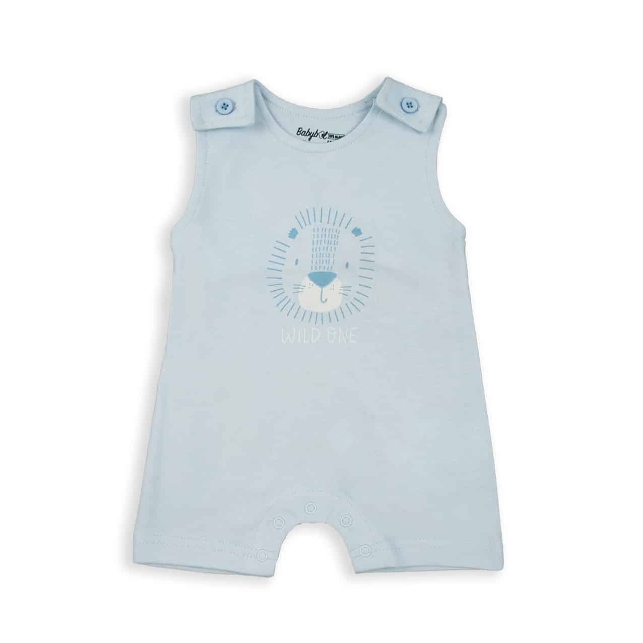 Pelele desmangado 100% algodón en color azul celeste y estampado león