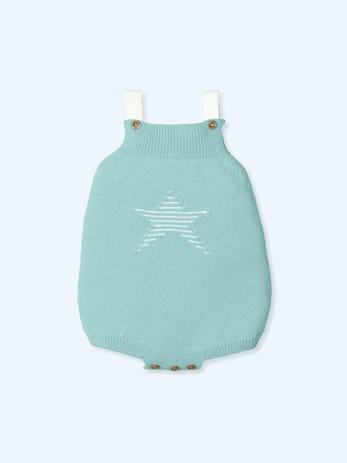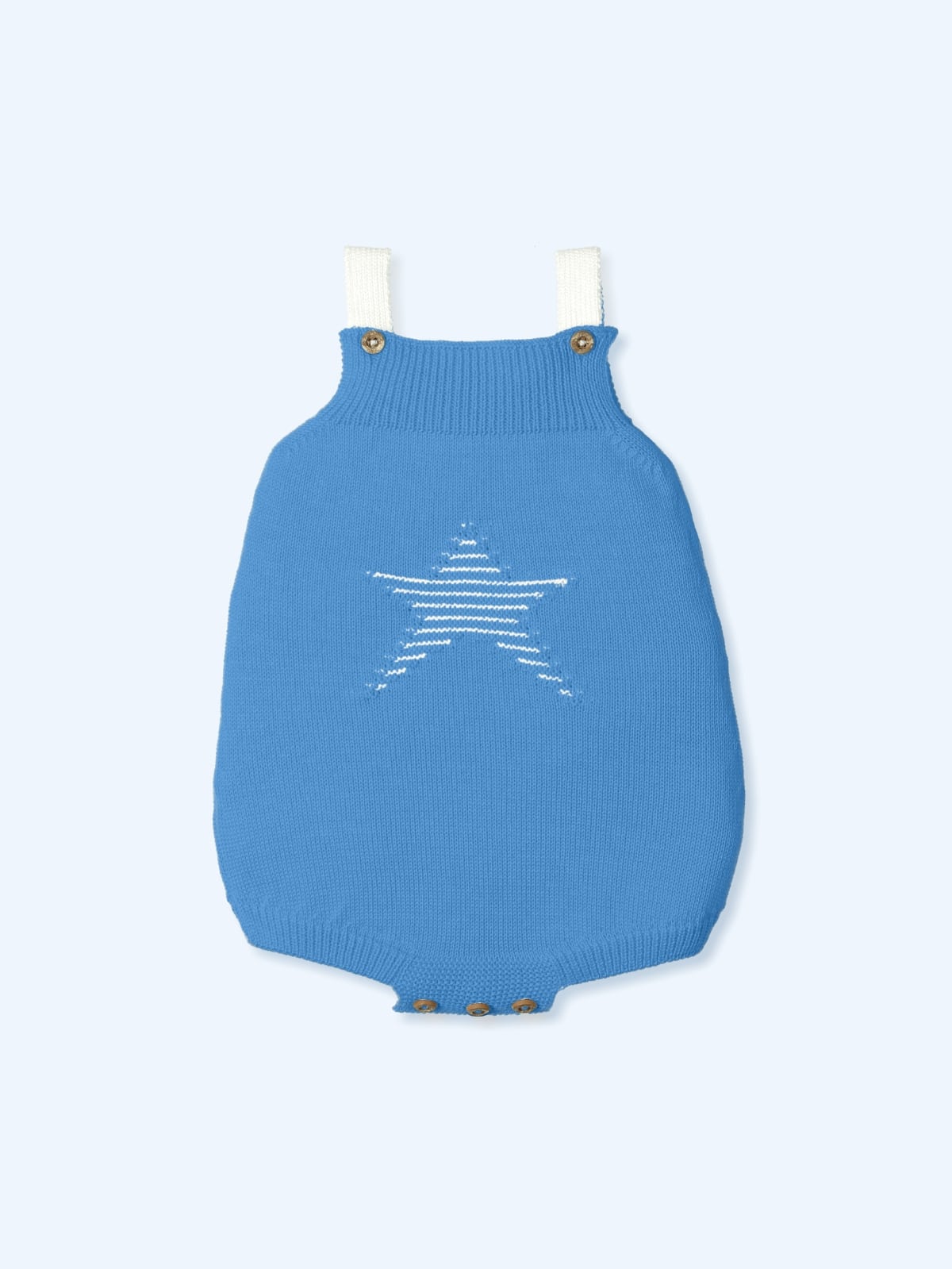 Pelele tirantes de hilo perlé con estrella blanca en el pecho.