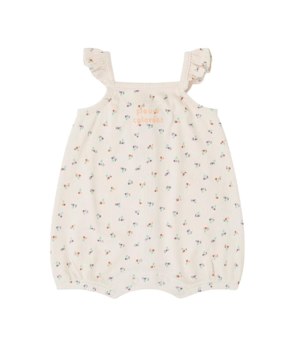 Pelele con tejido canalé en color crudo con estampado de florecitas.