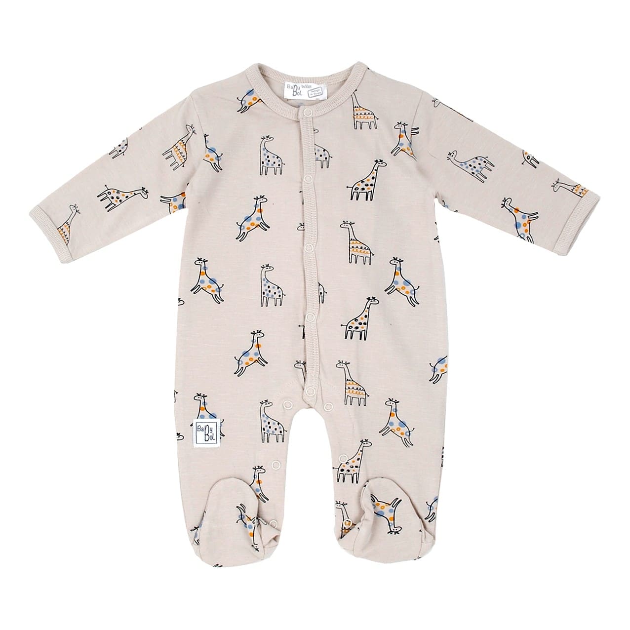 Pelele de color lino con estampado de jirafas.