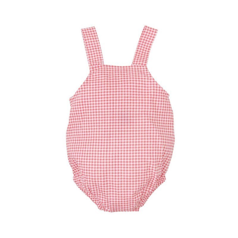 Pelele 100% algodón con estampado de cuadro vichy en rojo y blanco.