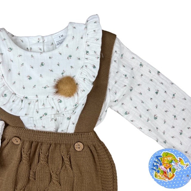 Peto de lana (Dralon) de color turrón con detalles trenzados. Apertura en los tirantes.