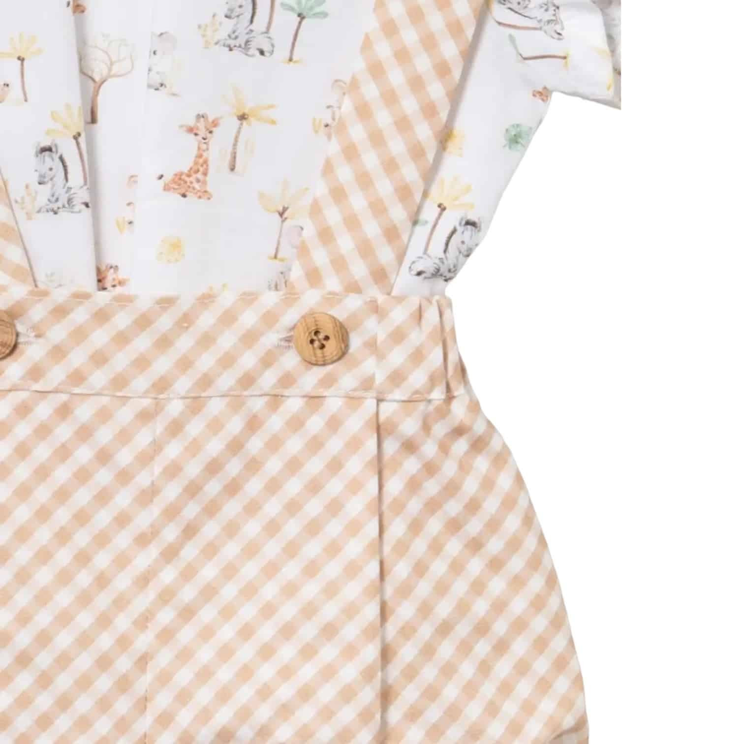 Ranita con estampado cuadro vichy de color marrón y blanco.