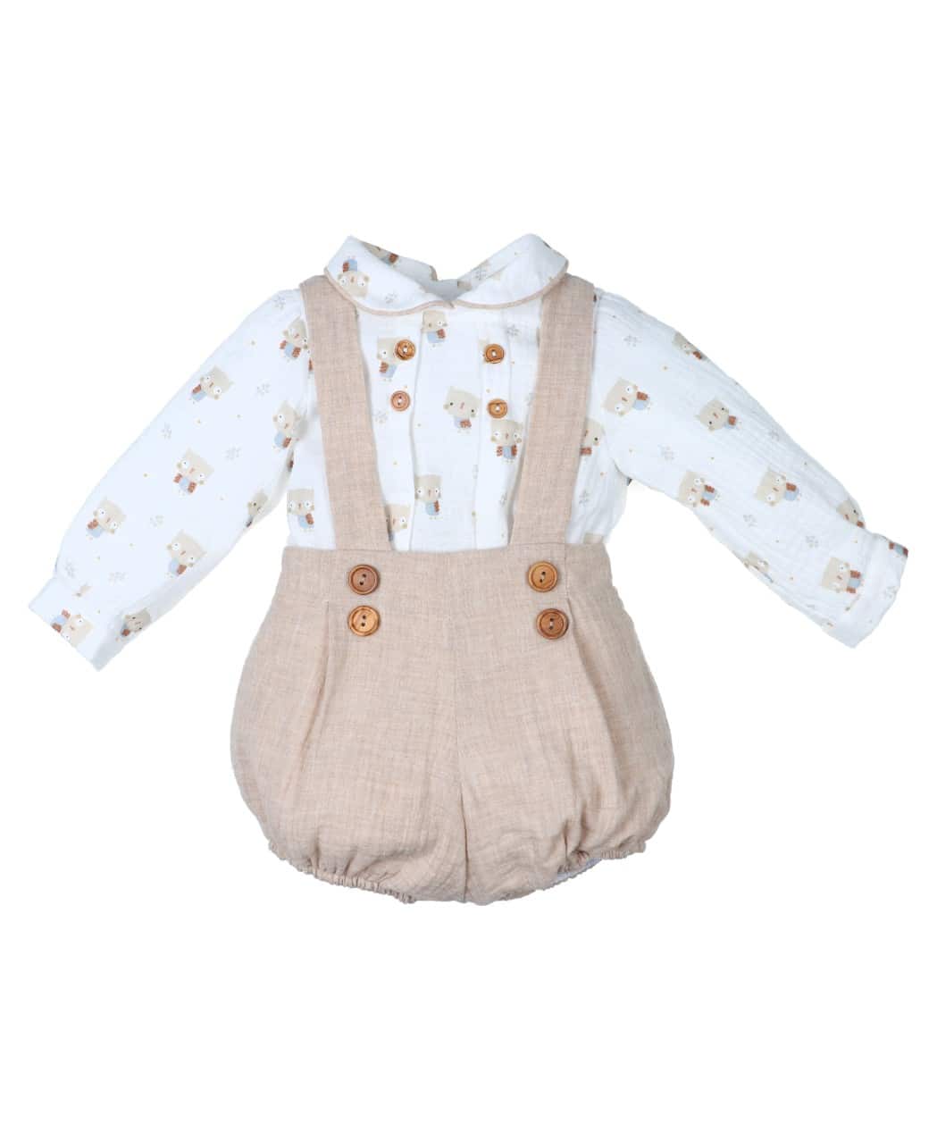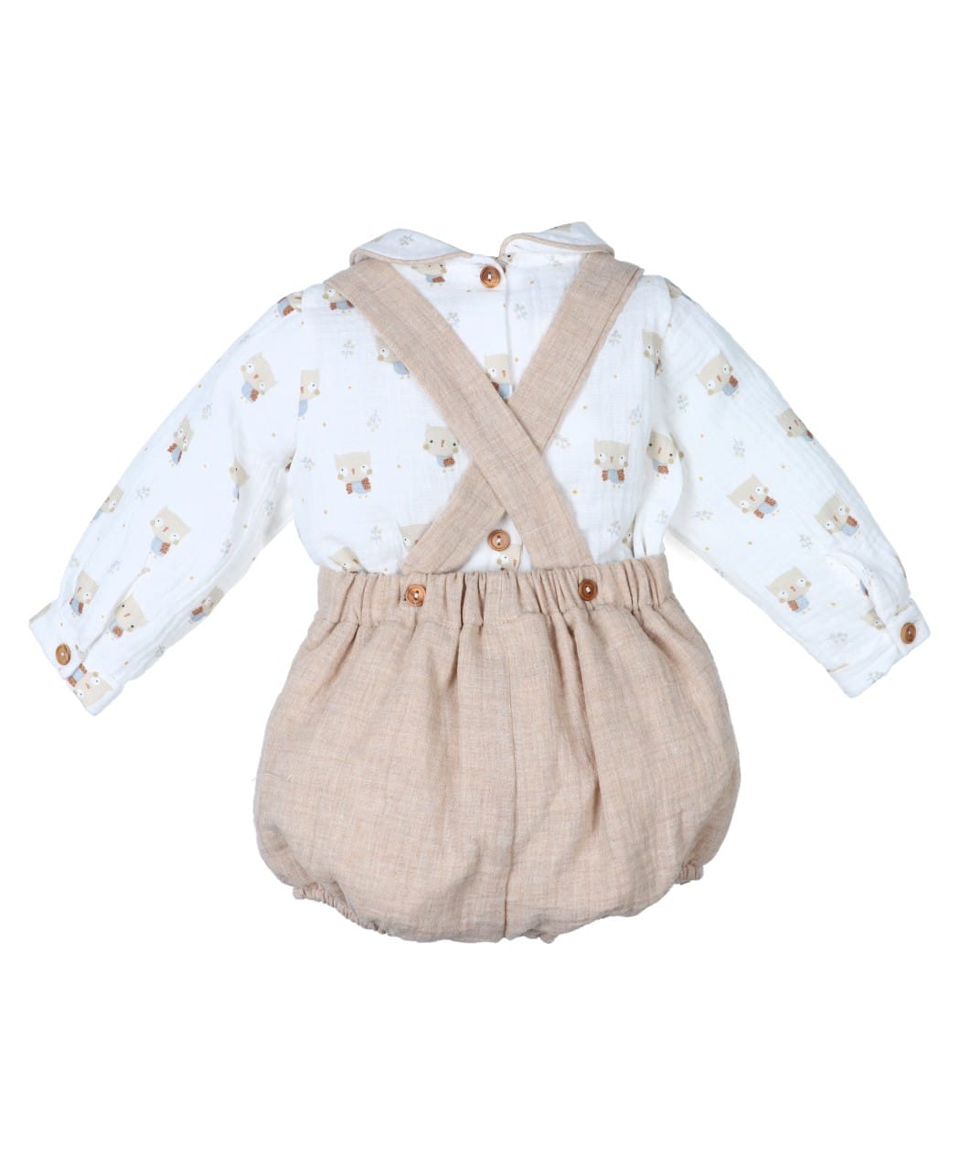 Camisa con estampado de búhos y botones decorativos en el pecho.