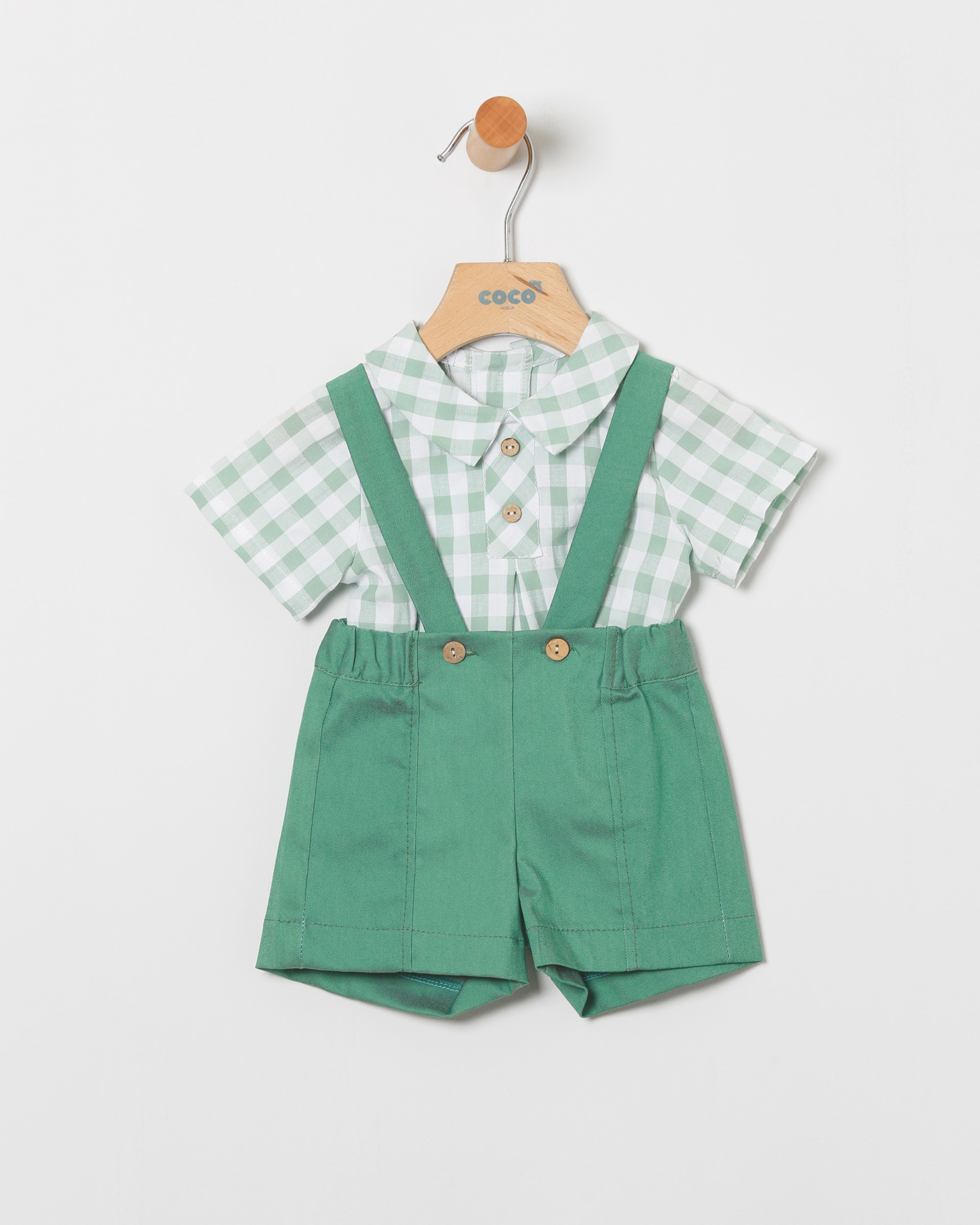 Camisa de manga corta con estampado de cuadros en verde y blanco.