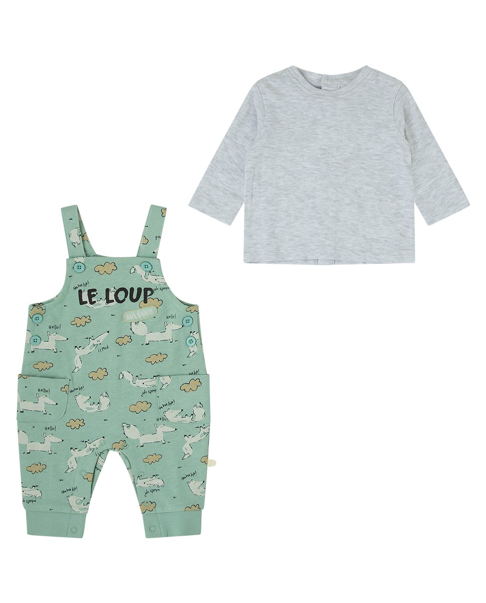 Peto 100% algodón de color verde menta con interior afelpado y estampado de zorros.