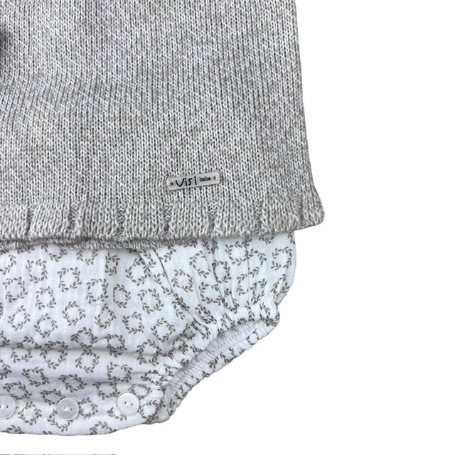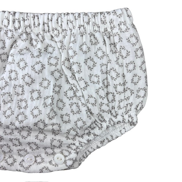 Ranita con tejido bambula estampado en color tostado. Apertura en la parte inferior con botones.