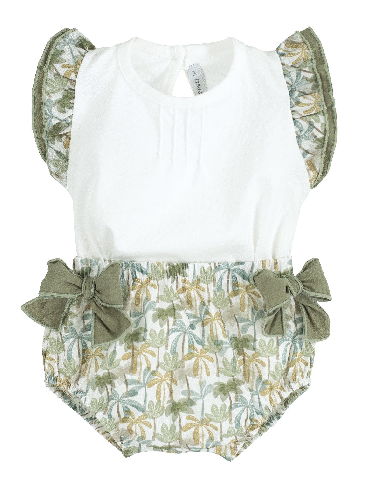 Ranita con estampado de palmeras en color verde y detalle lazos.