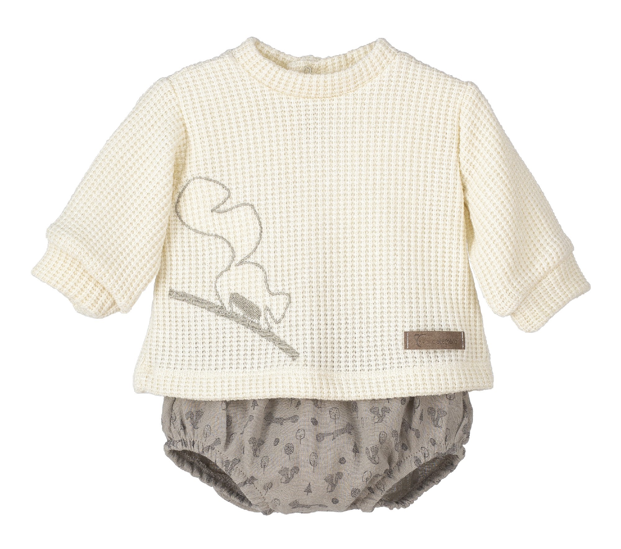 Jersey cálido en color crudo con detalle ardilla bordado.
