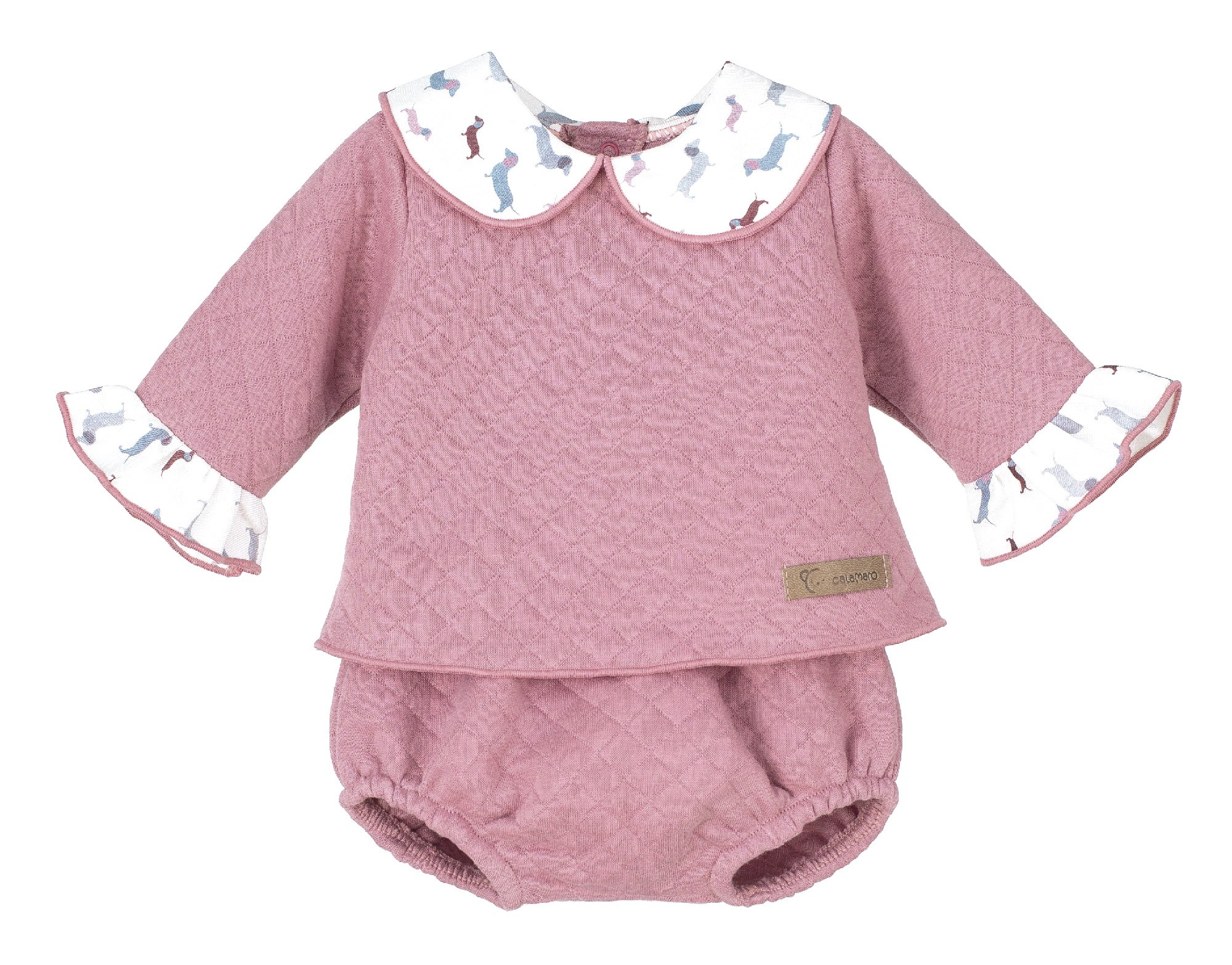 Conjunto de algodón cálido en color rosa maquillaje con bordado rombos.