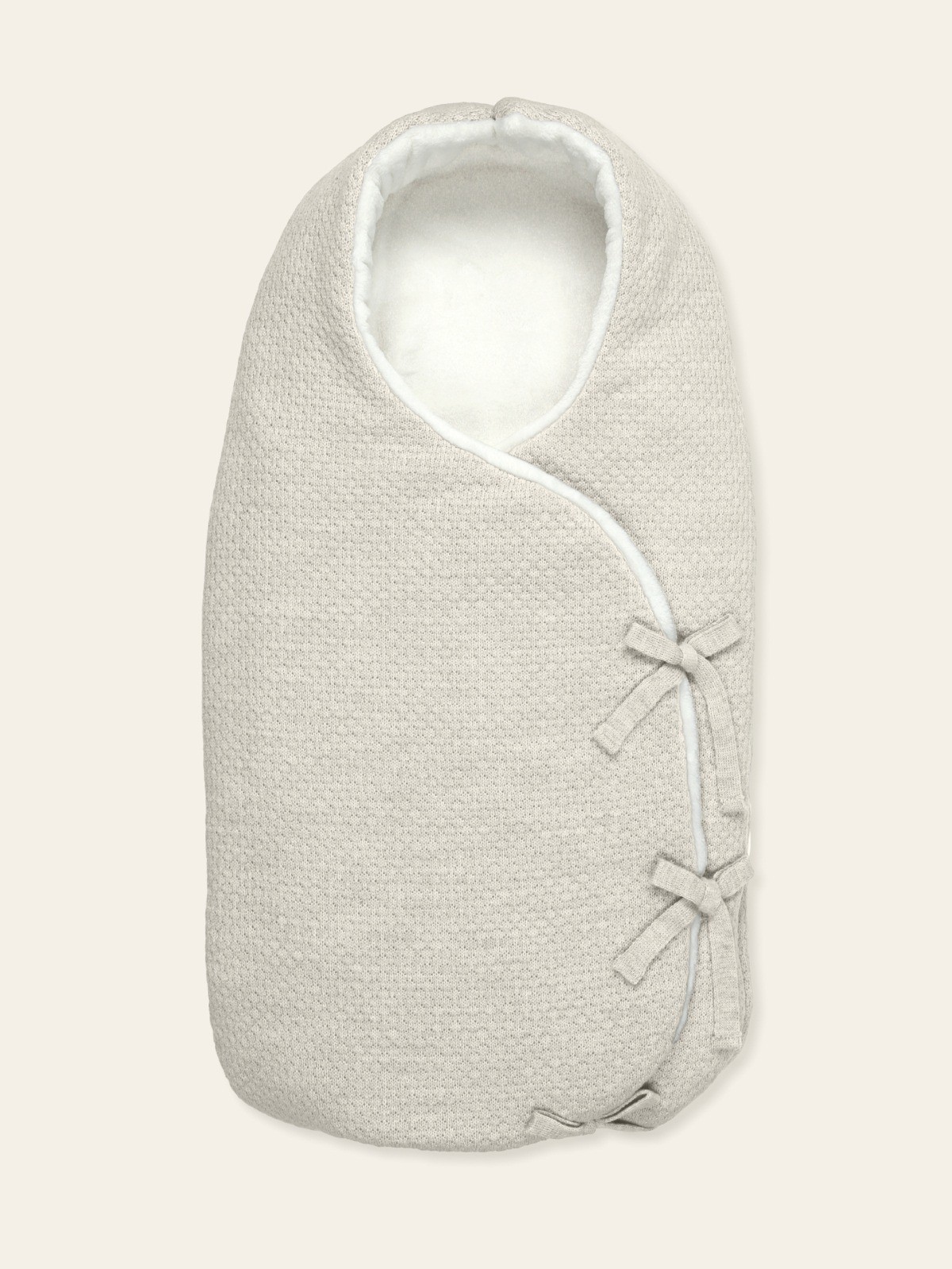 Saco de lana de color lino con apertura cruzada. Interior con forro polar en color blanco.