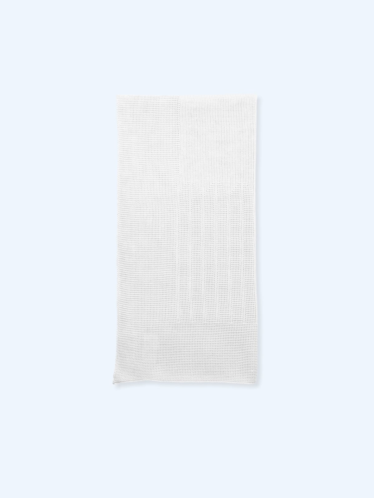 Toquilla rectangular de hilo perlé con detalle líneas bordadas en el centro.