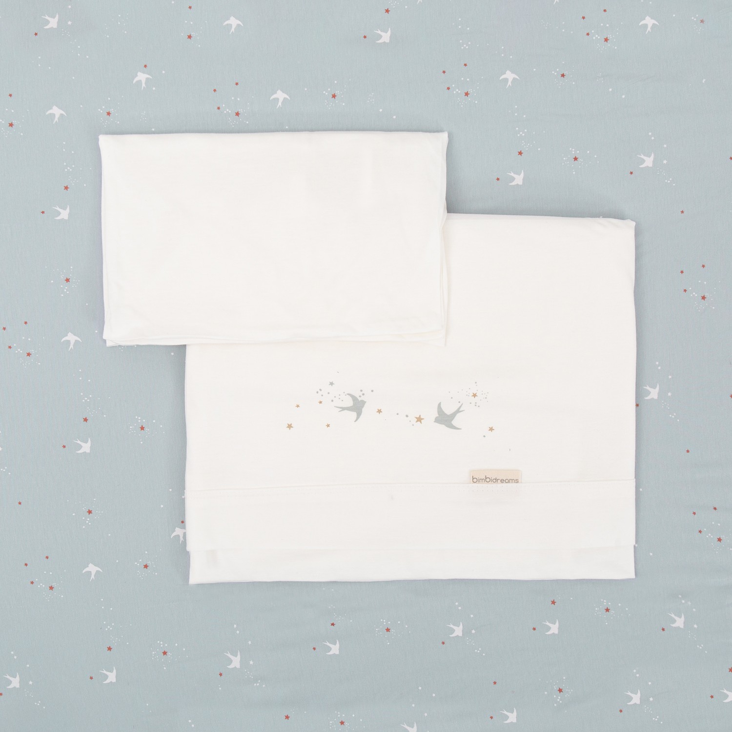 Juego de sábanas de punto elástico algodón 100% para bebé que incluye encimera, bajera ajustable y funda de almohada.